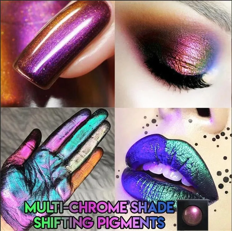 Разноцветные хромовые пигменты, разноцветные хромовые тени, блестящие тени для век-хамелеон, призматическая пудра, блестящая палитра теней для век