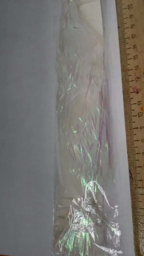 Прибыл быстро и приятный материал, но я думал, что это цвета радуги, но действительно просто мерцающий белый. Хотя мне это нравится.