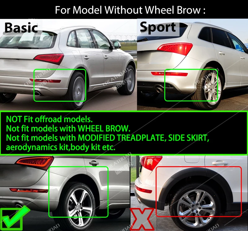 Фитинг: для Audi Q5 2009 ~ 2017Не подходит для внедорожных моделейНе подходит для моделей с колесиками.Не подходит для моделей с модифицированной беговой дорожкой, боковой юбкой, комплектом аэродинамики, комплектом для тела и т. д.