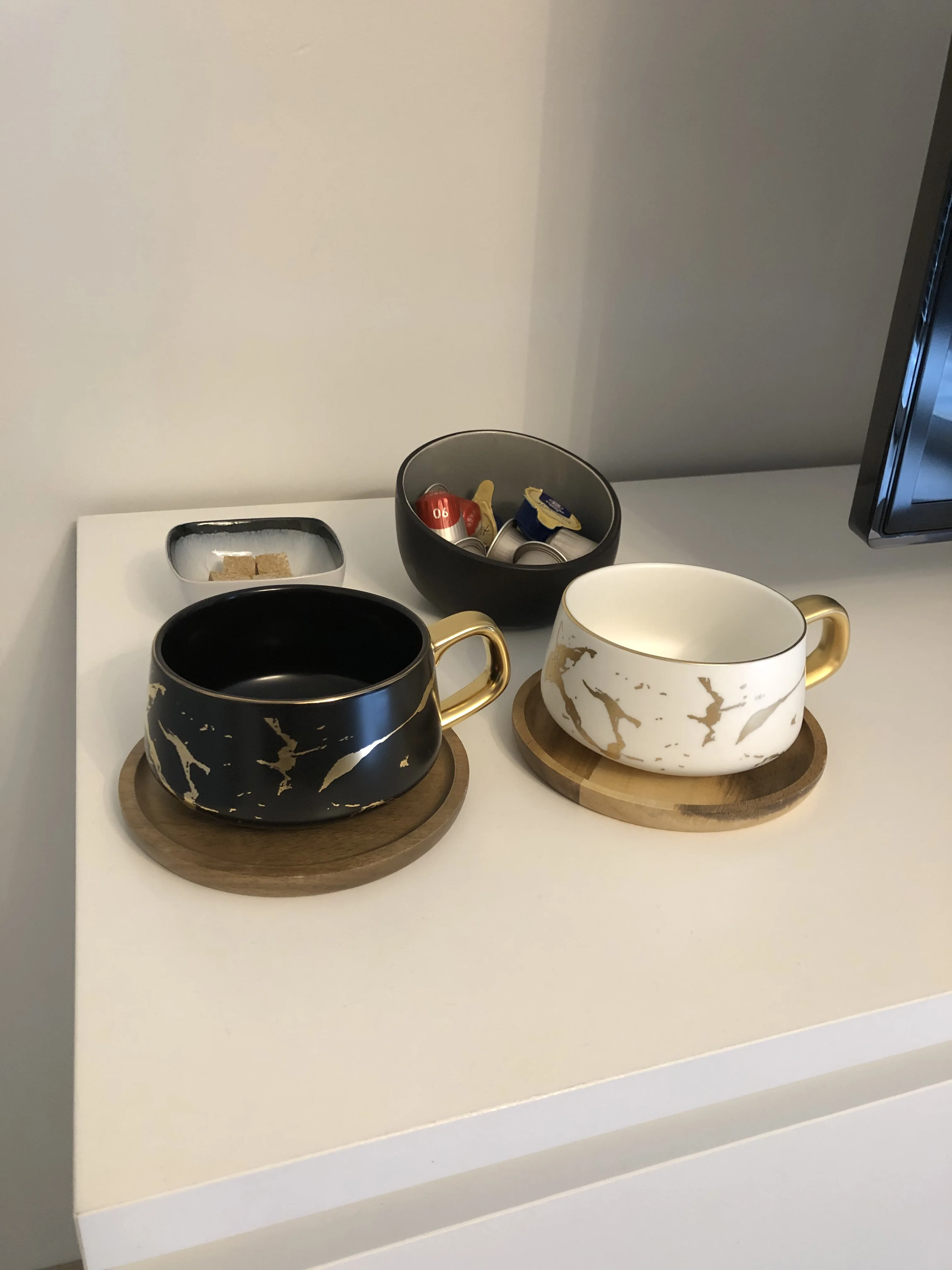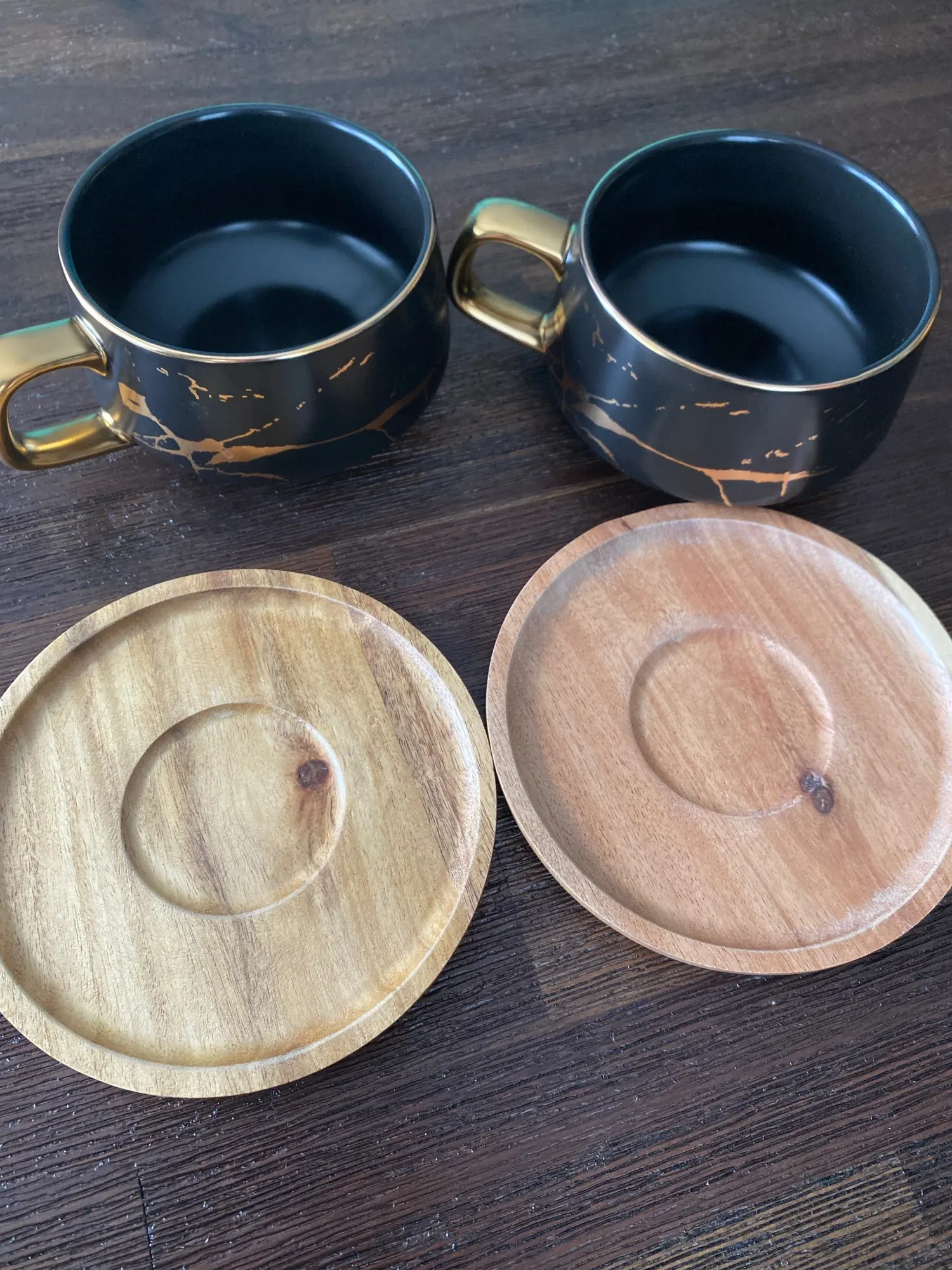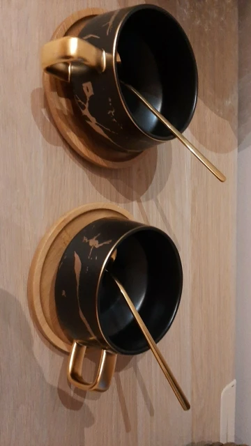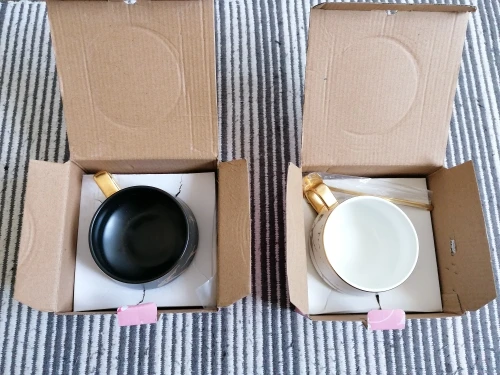 Кружки отличного качества! Порадовали золотистые ложки. Покупкой доволен. Отправка быстрая, дошло в сохранности.
