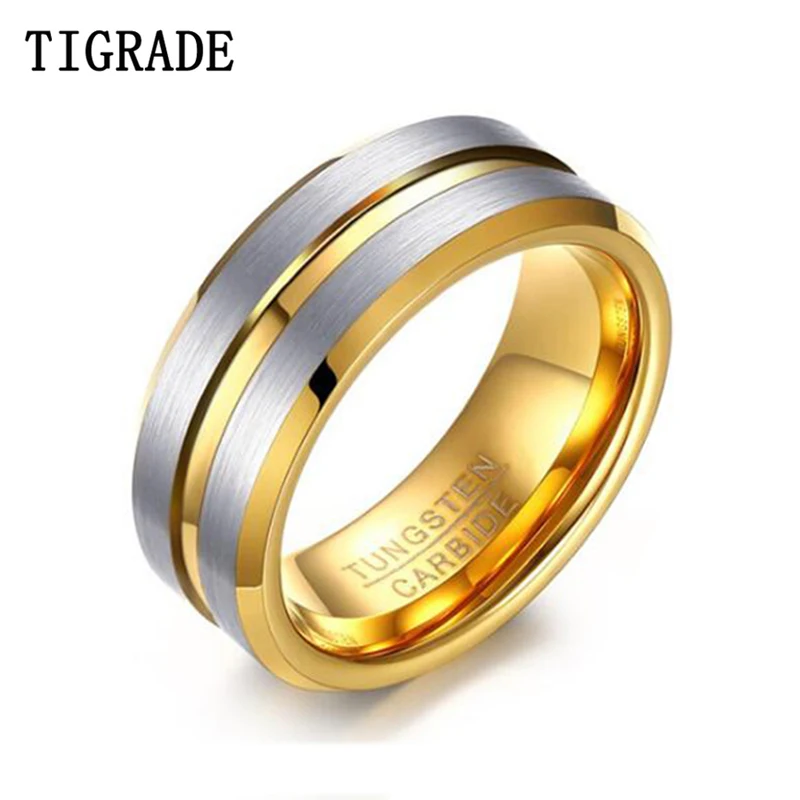 Tigrade роскошное золотое с серебристым цветом вольфрамовое Карбидное мужское кольцо обручальное кольцо для мужчин матовый обручальные Мужские t кольца Anillos Bague