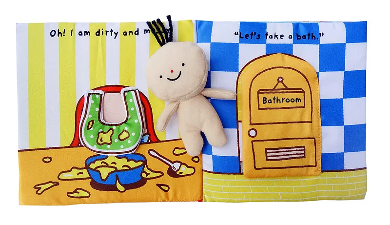 Книга для ванной, чтобы научить вашего ребенка любить купание. Многие независимые гаджеты в банной книге имеют встроенную звуковую бумагу, и отдельная кукла также предоставляется для ребенка для изучения. Еще одна тканевая книга, которая учит детей ходить в туалет самостоятельно. Встроенный в множество независимых небольших аксессуаров, встроенная звуковая бумага, для детей, чтобы исследовать самостоятельно.