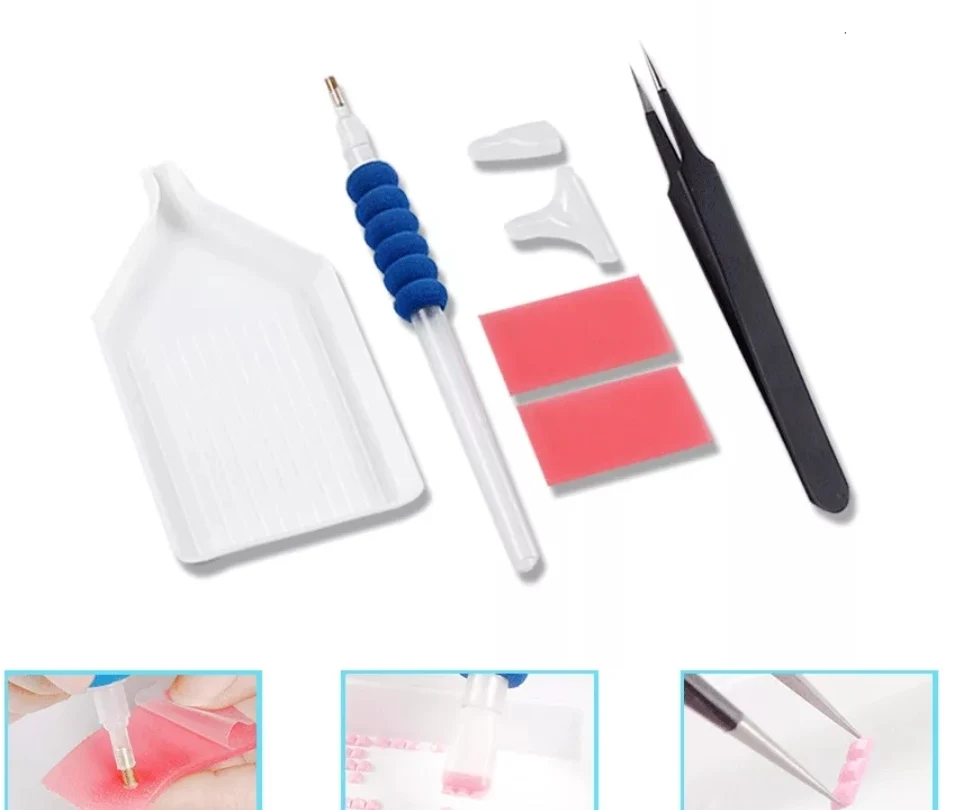 2. Fill the pen with glu, put the diamonds into the plate.