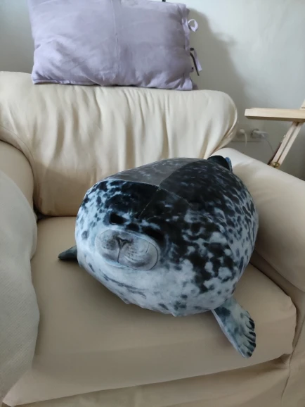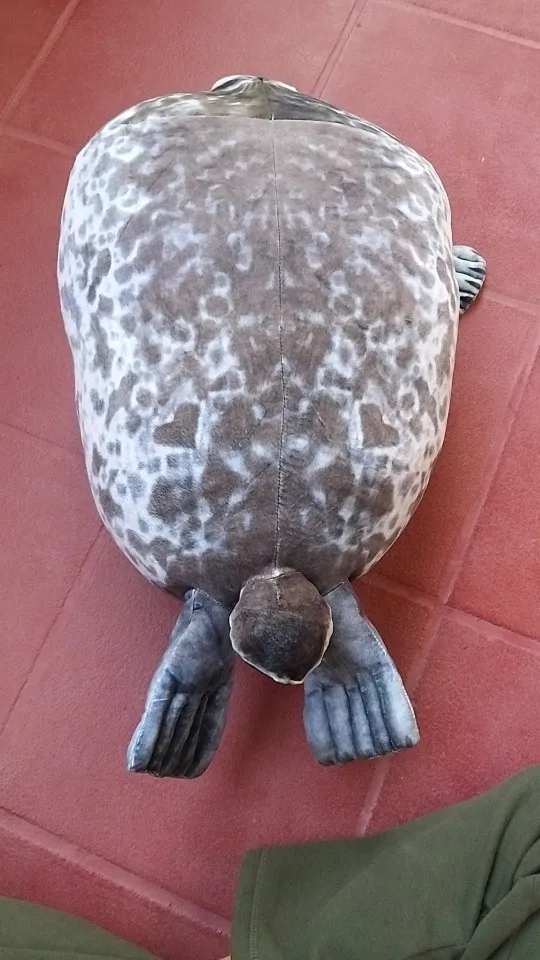 тюленьчик очень маленький, 30 см, хоть я заказывал 40 см,кривые швы лапы связаны, сильно воняет