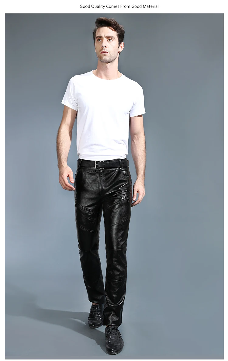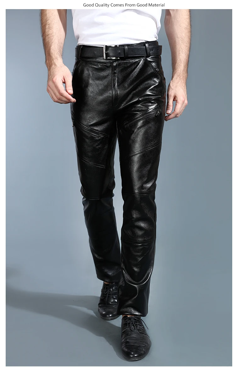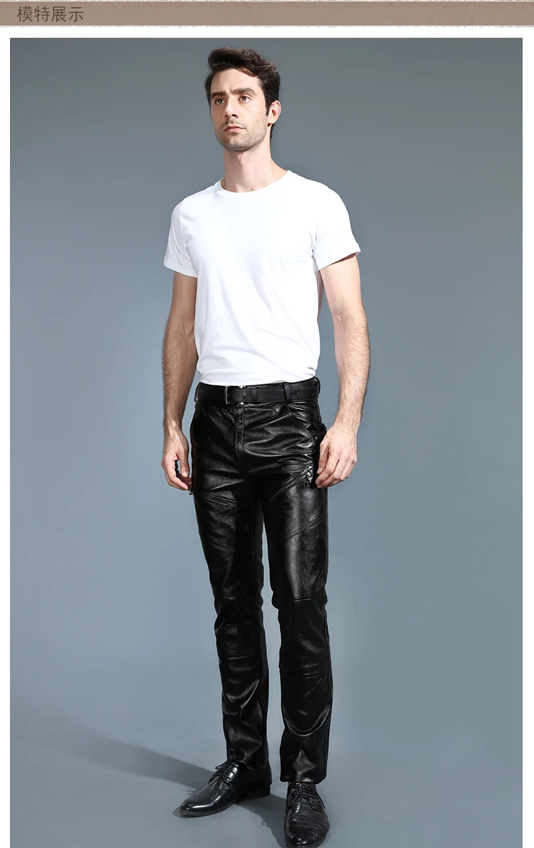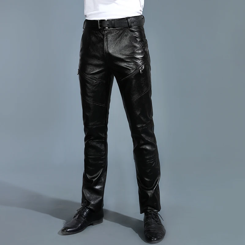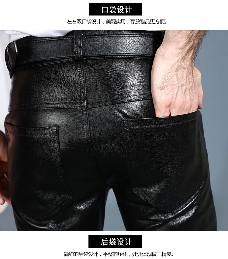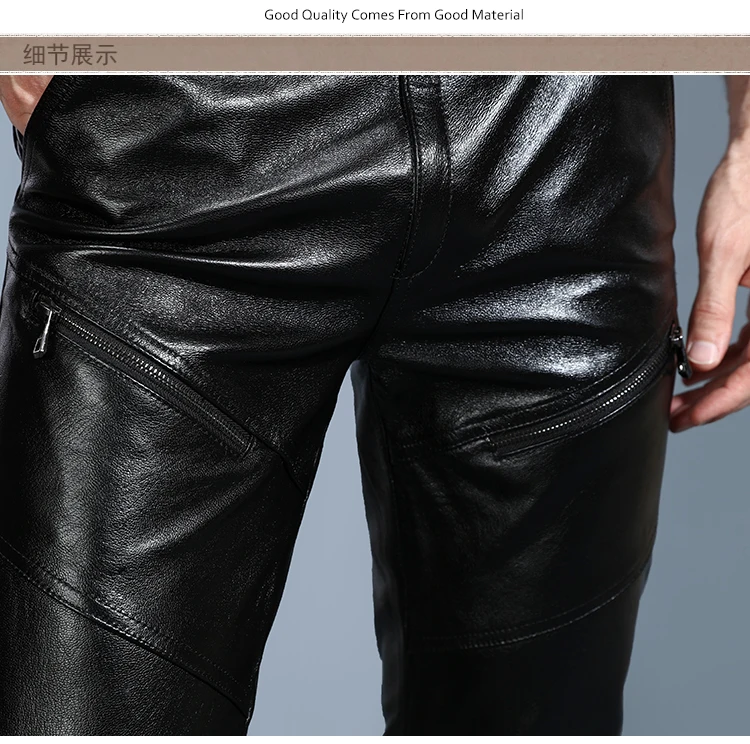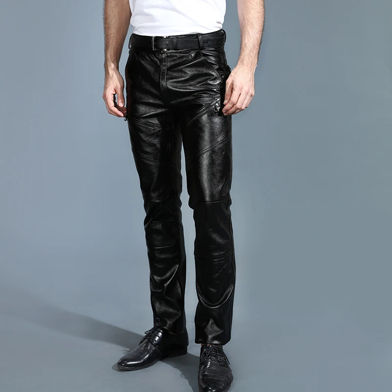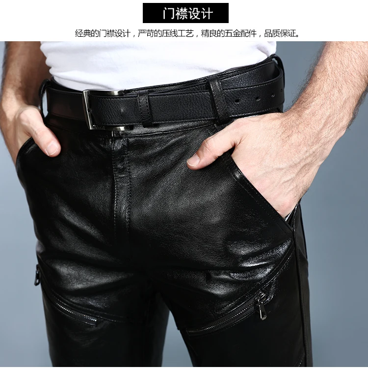 Мужские брюки из натуральной овечьей кожи, классические байкерские брюки с флисовой подкладкой размера плюс для осени и зимы