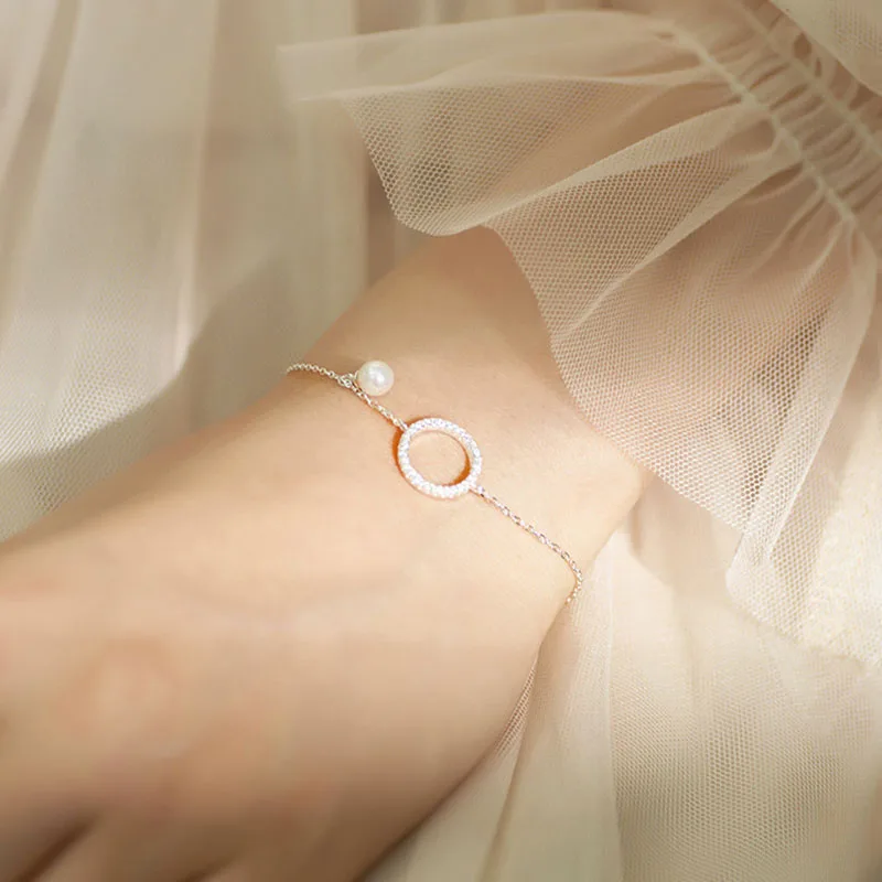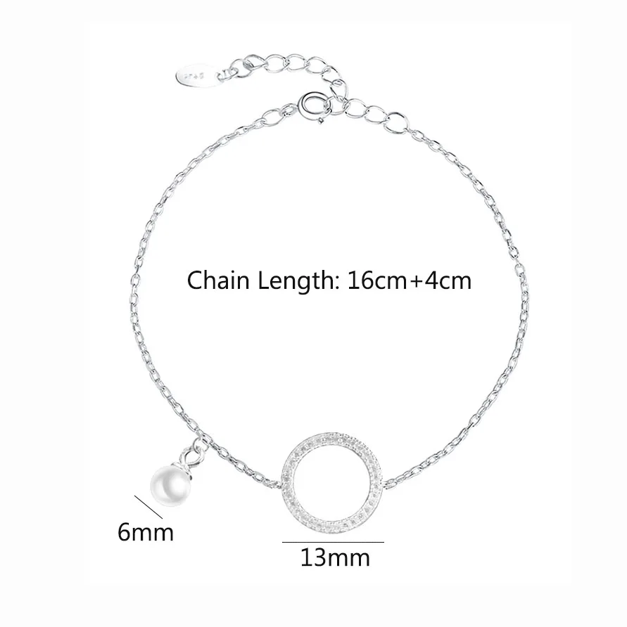 ANENJERY, простой, 925 пробы, серебряный, микро-браслет, Круглый, для женщин, кубический цирконий, жемчуг, цепочка, браслет, браслеты, S-B123