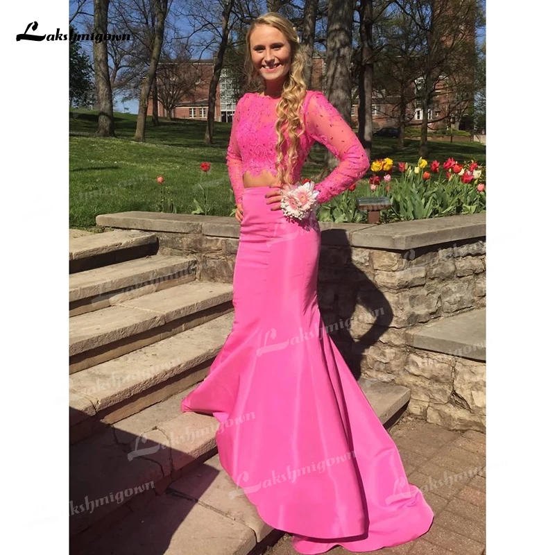 Женское вечернее платье-русалка, скромное кружевное платье из двух предметов, с длинным рукавом и круглым вырезом, для выпускного вечера, 2021