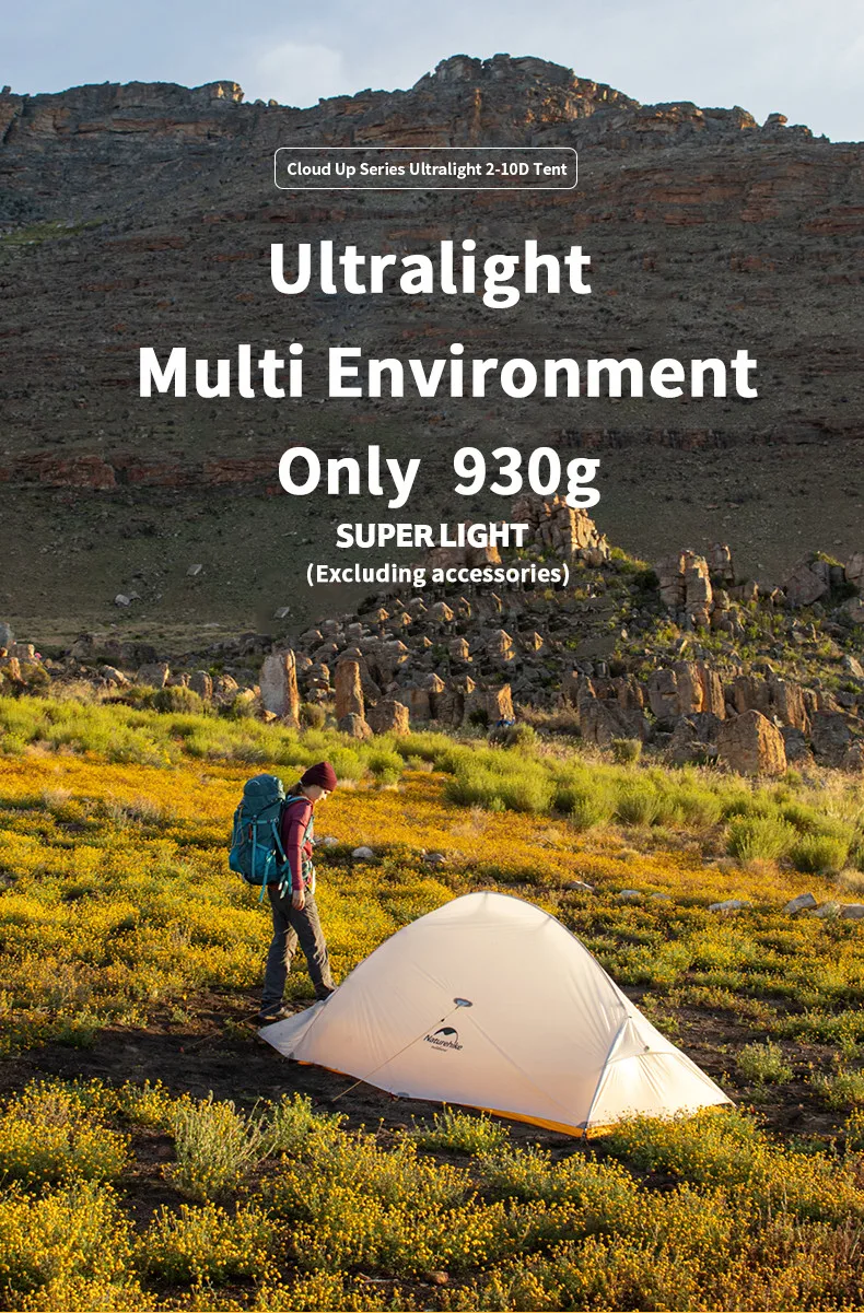 Палатка Naturehike Upgrade 10D туристическая Ультралегкая, нейлон, силикон, облако вверх 2, на 1-2 человек, водонепроницаемая, портативная, для пешего туризма, с бесплатным ковриком