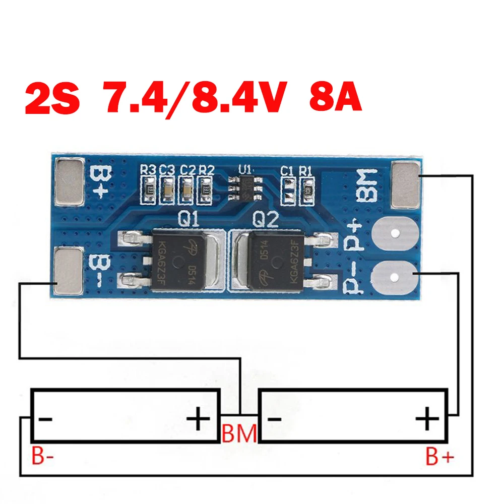5 шт.лот 18650 BMS PCM 15A пиковая плата защиты аккумулятора 2S 8A Li-Ion 7,4 В 8,4 В BMS для литий-ионных батарей