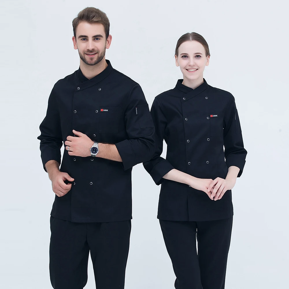 Унисекс Черный с длинным рукавом мастер повара Рабочая форма ресторан отель барбекю кухня рабочая одежда еда сервис шеф-повара Топы