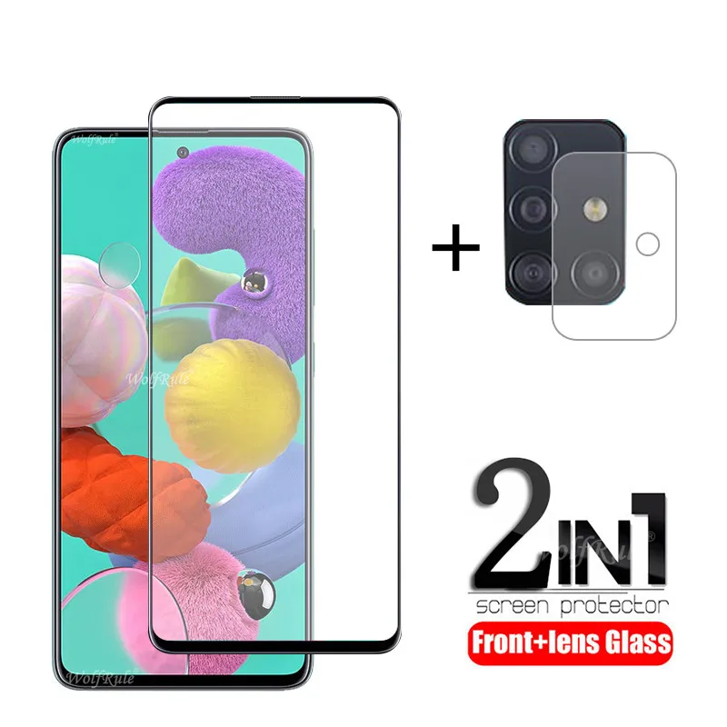 2-в-1 для Samsung Galaxy A51 стекло для Samsung M21 закаленное стекло Полный Клей протектор экрана для Samsung M31 A51 A71 стекло объектива