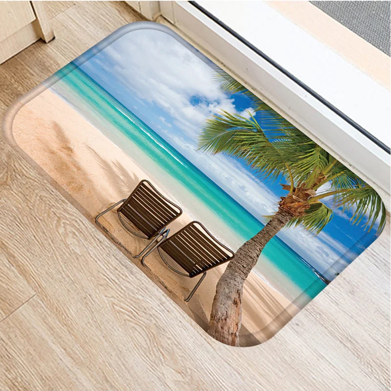 1 шт., 40*60 см, морской пляж, живописный узор, нескользящий замшевый коврик, дверной коврик, уличный коврик для кухни, гостиной, напольный коврик 48293