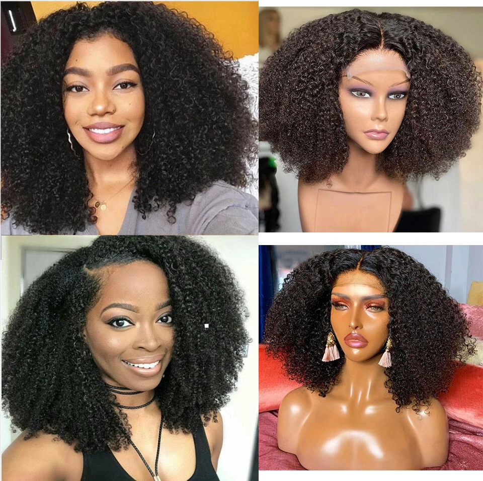 Афро курчавые вьющиеся парики из натуральных волос на фронтальной сетке для женщин, предварительно выщипанные бразильские курчавые вьющиеся парики на сетке, плотность 180 Реми