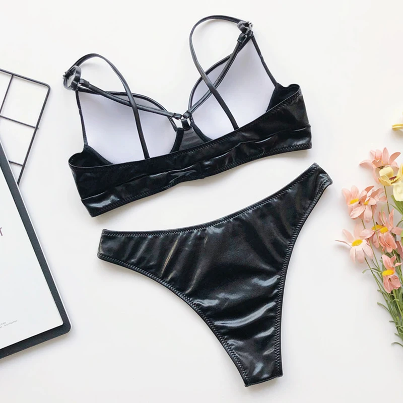 Сексуальные черные кожаные бикини In-X 2020, женский купальник пуш-ап, женские летние купальники, бандажный купальник, женский купальный костюм, купальники