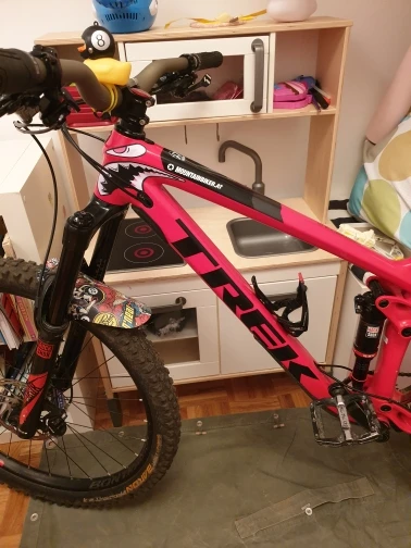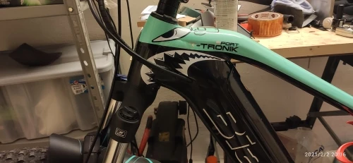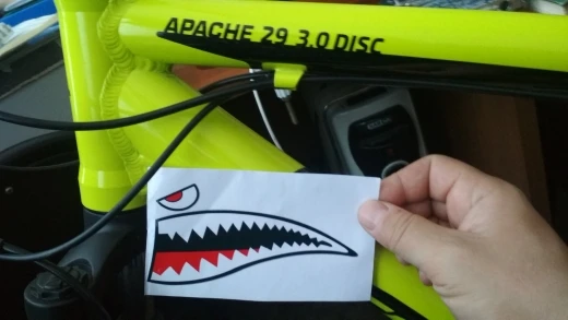 1. Оторвите\переклейте заводские наклейки если есть и пройдитесь обезжиривателем в тех местах куда будете клеить. 2. Не снимайте сразу плёнку что бы наклеить стикер. Сначала обрежьте наклейку по контуру и приложите к велосипеду, так будет более-менее понятно как это в итоге будет выглядеть. 3. Когда будете отклеивать наклейку, не тяните от края до края, есть достаточно тонкие переходы, которые в итоге порвутся. В общем наклеил, далеко не с первого раза. Вывести всё в идеал с двух сторон не совсем получилось. У меня ещё тормозные трубки проходят как раз в месте наклейки, что не добавляло удобства, но в целом результатом доволен)
