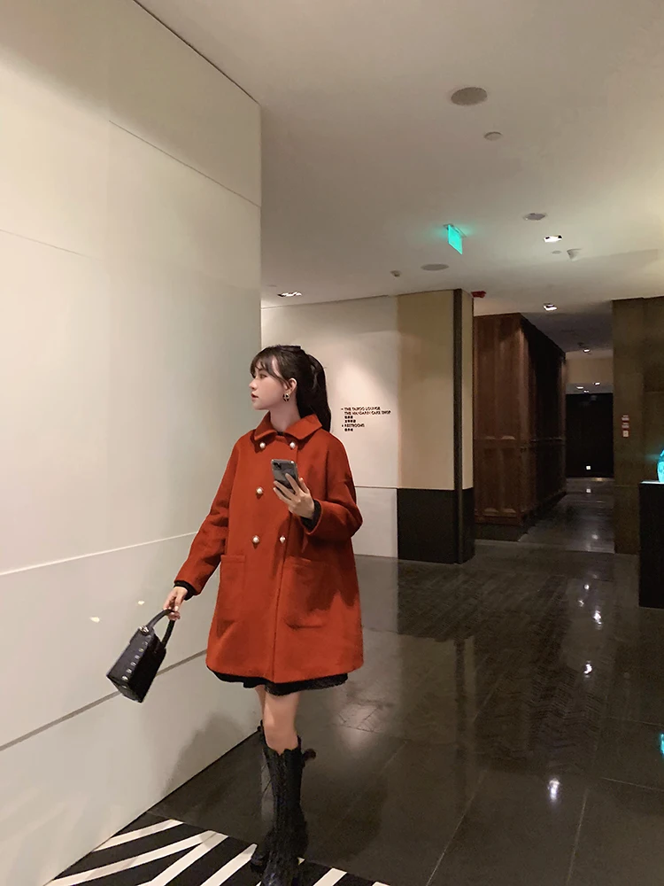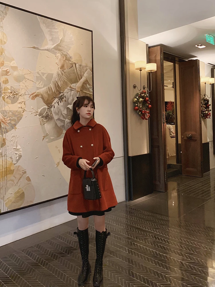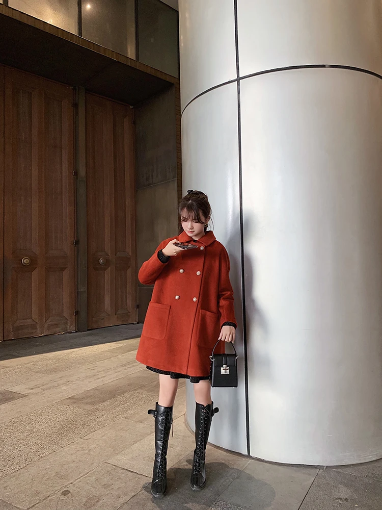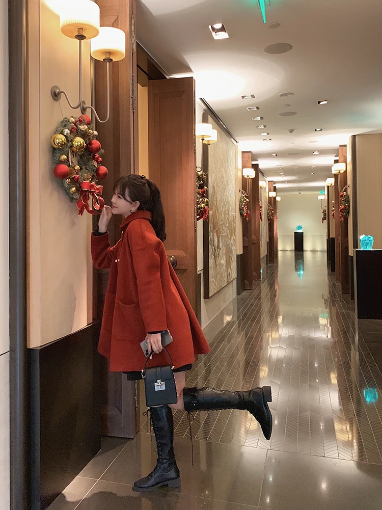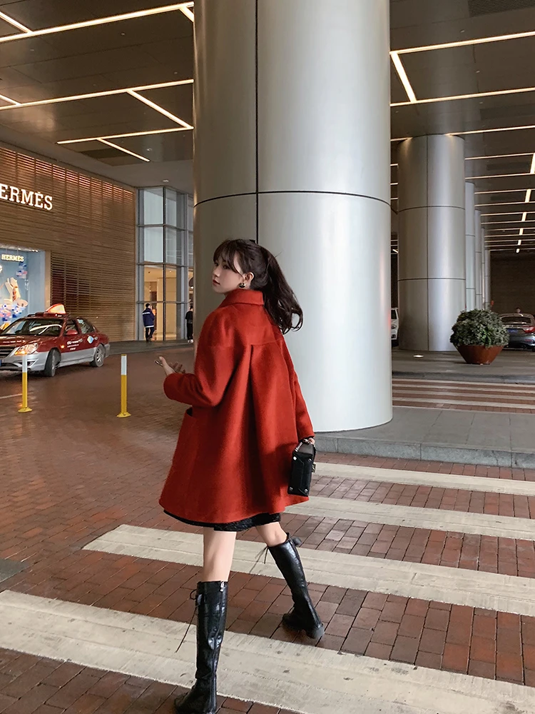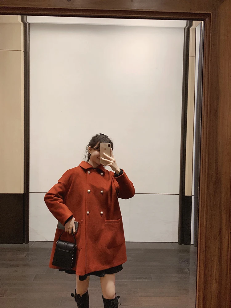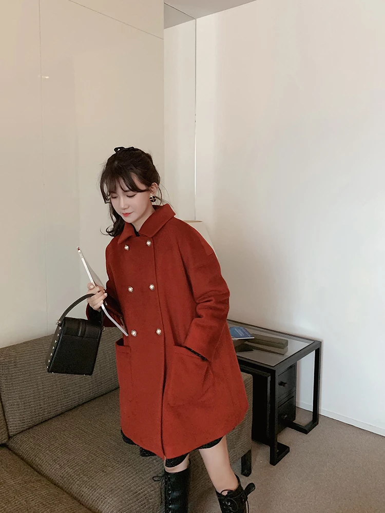 MISHOW Женское зимнее шерстяное пальто в стиле фестиваля повседневное двубортное прямое свободное красное пальто Топы MX19D9723