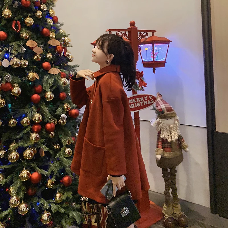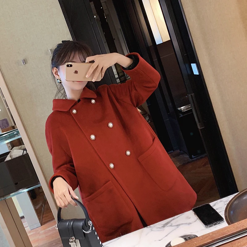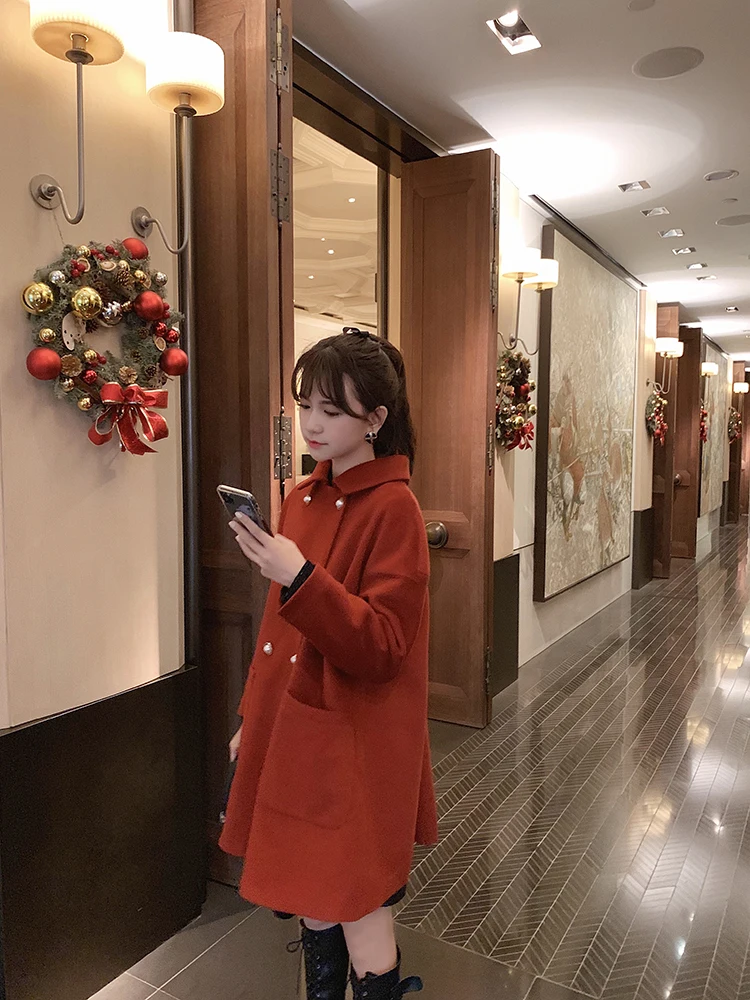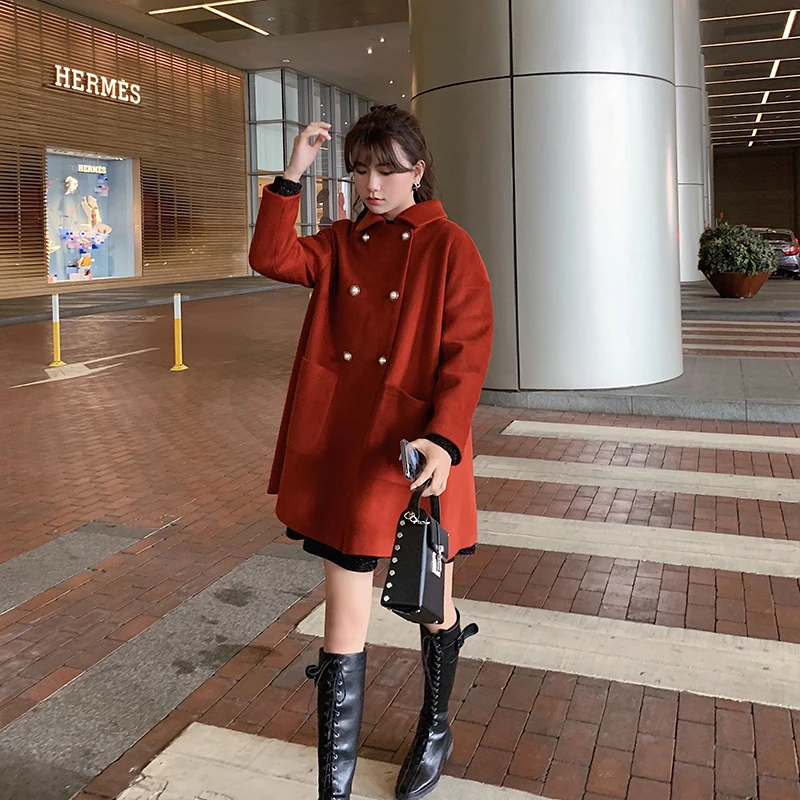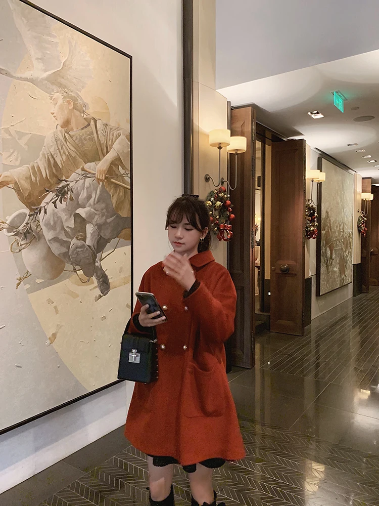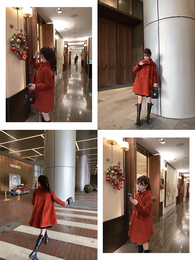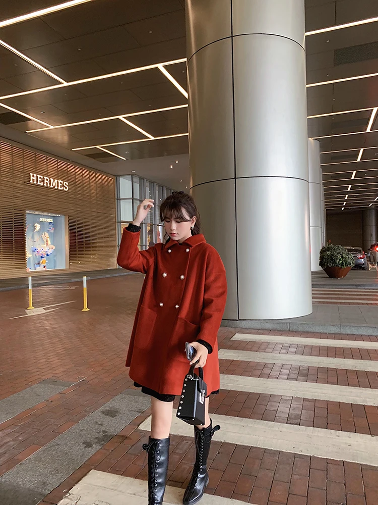 MISHOW Женское зимнее шерстяное пальто в стиле фестиваля повседневное двубортное прямое свободное красное пальто Топы MX19D9723