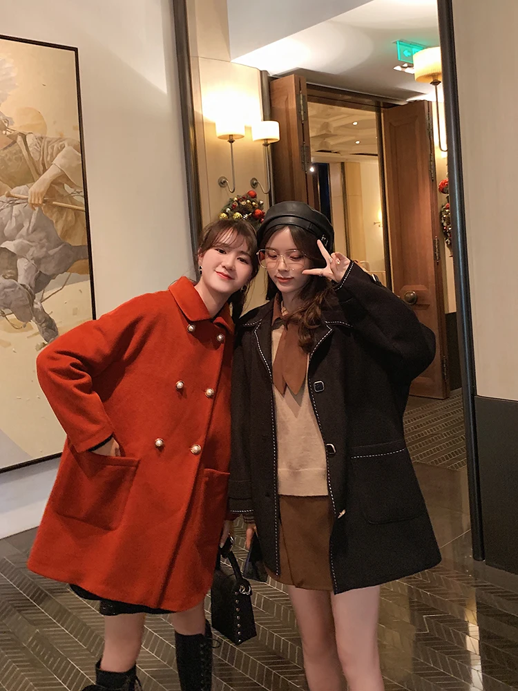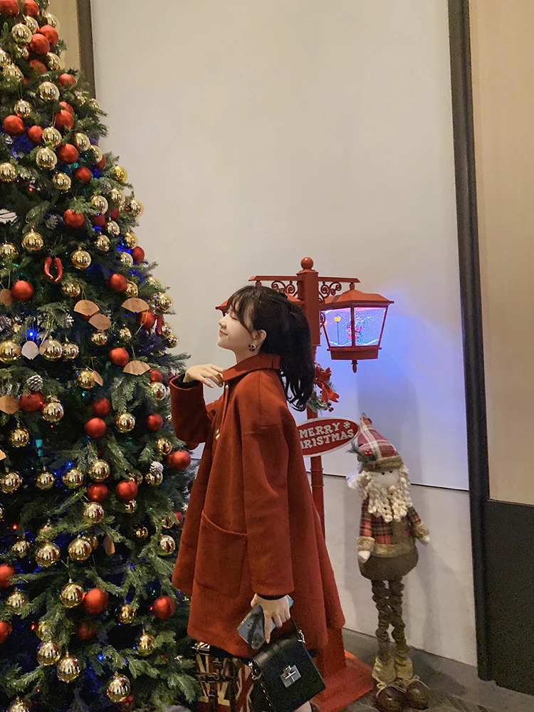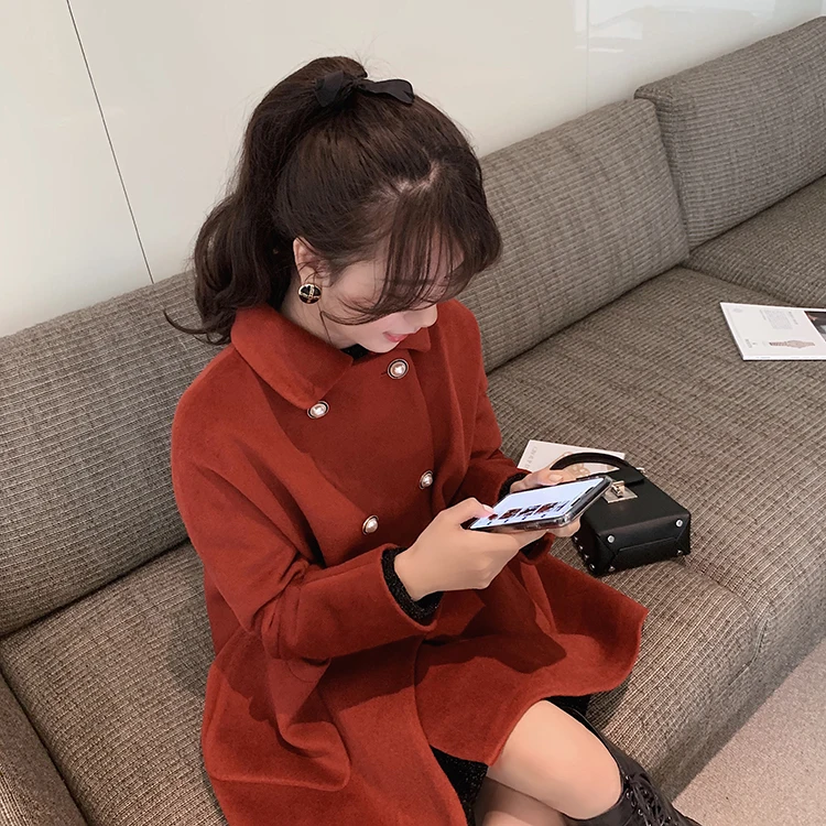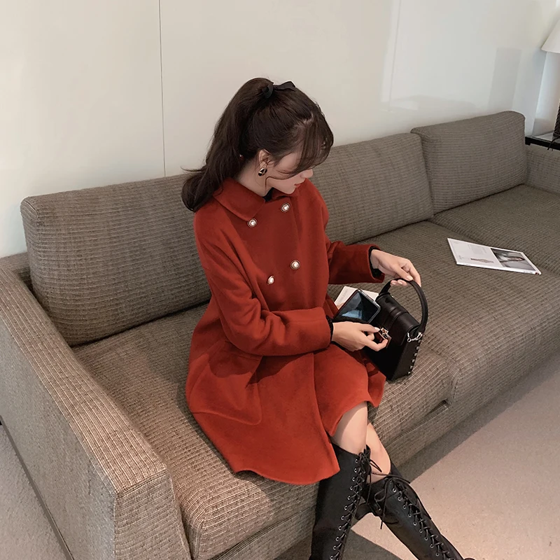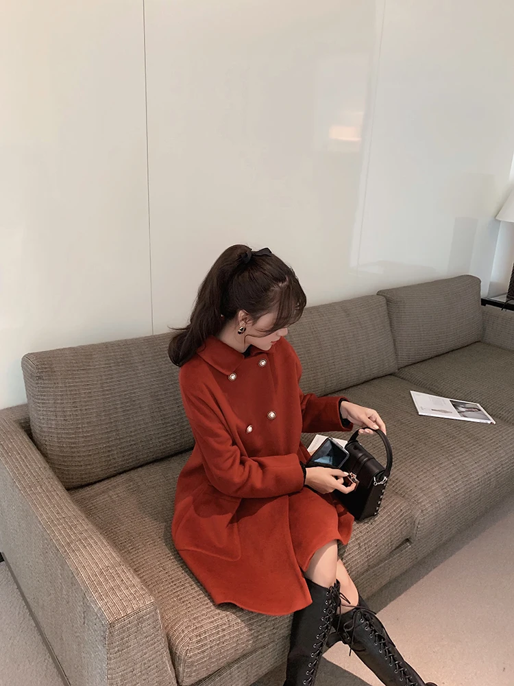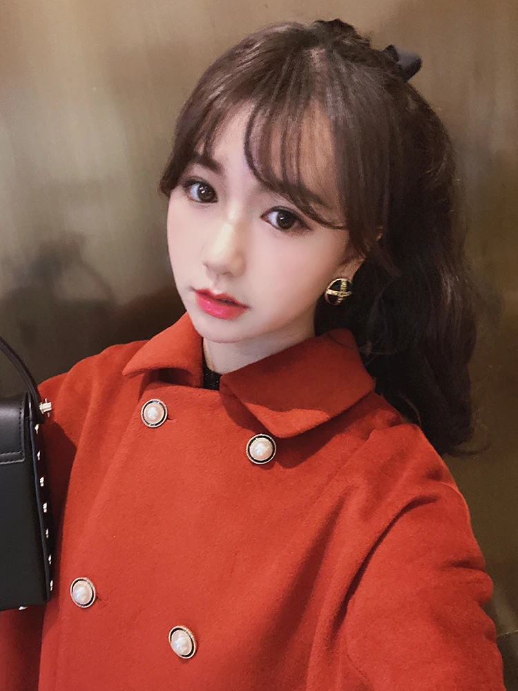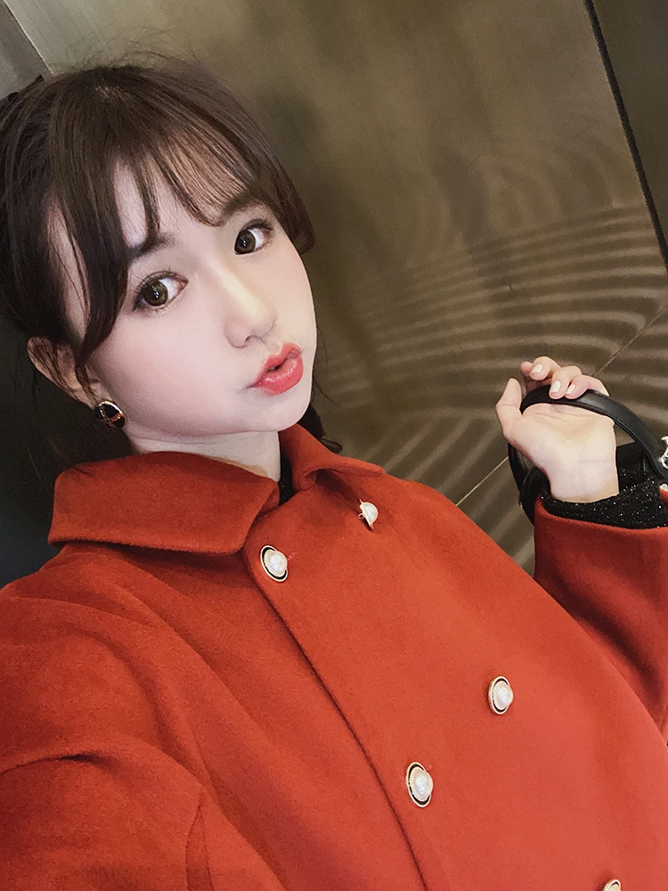 MISHOW Женское зимнее шерстяное пальто в стиле фестиваля повседневное двубортное прямое свободное красное пальто Топы MX19D9723