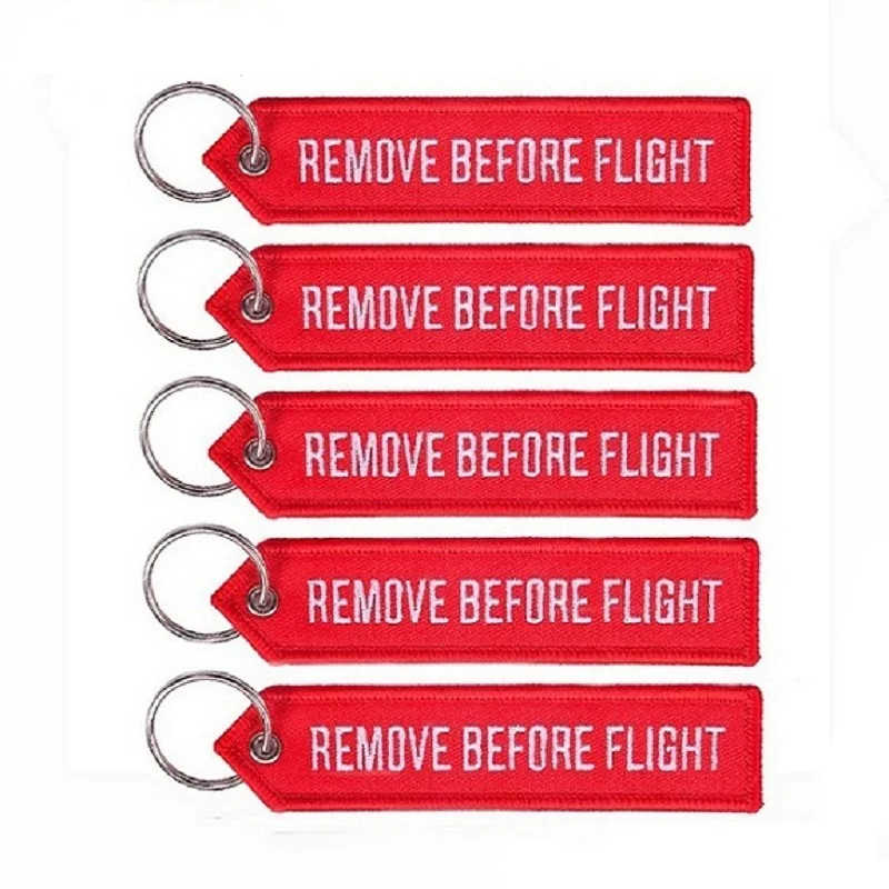 Брелки для ключей с красной вышивкой Remove Before Flight, комплект из 5 предметов, ювелирные украшения в подарок