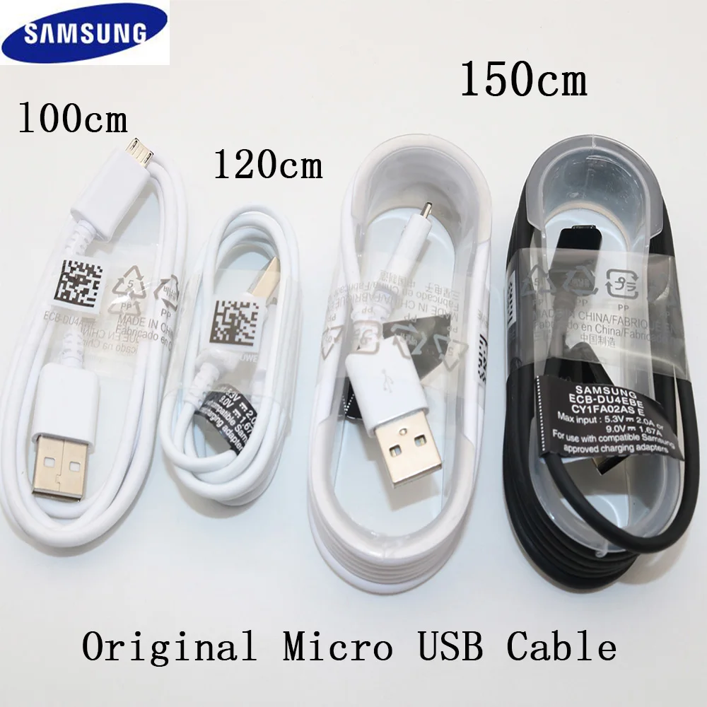 Кабель Micro USB Samsung 3,0, кабель для быстрой зарядки и синхронизации данных для Galaxy S3 S4 S6 S7 Edge Note2 Note4 A5 A7 J5 J7 Особенности товара Оригинальный черный/белый кабель micro usb 100 см/120 см/150 см Подходит для всех смартфонов с micro USB 2а Быстрая зарядка и передача данных Пожалуйста, подтвердите, что ваш телефон имеет порт micro usb, новый телефон, как galaxy s8/s8 plus/A3 2017/A5 2017 использует порт type c, если нужен кабель type c, пожалуйста, нажмите на нашу другую ссылку.