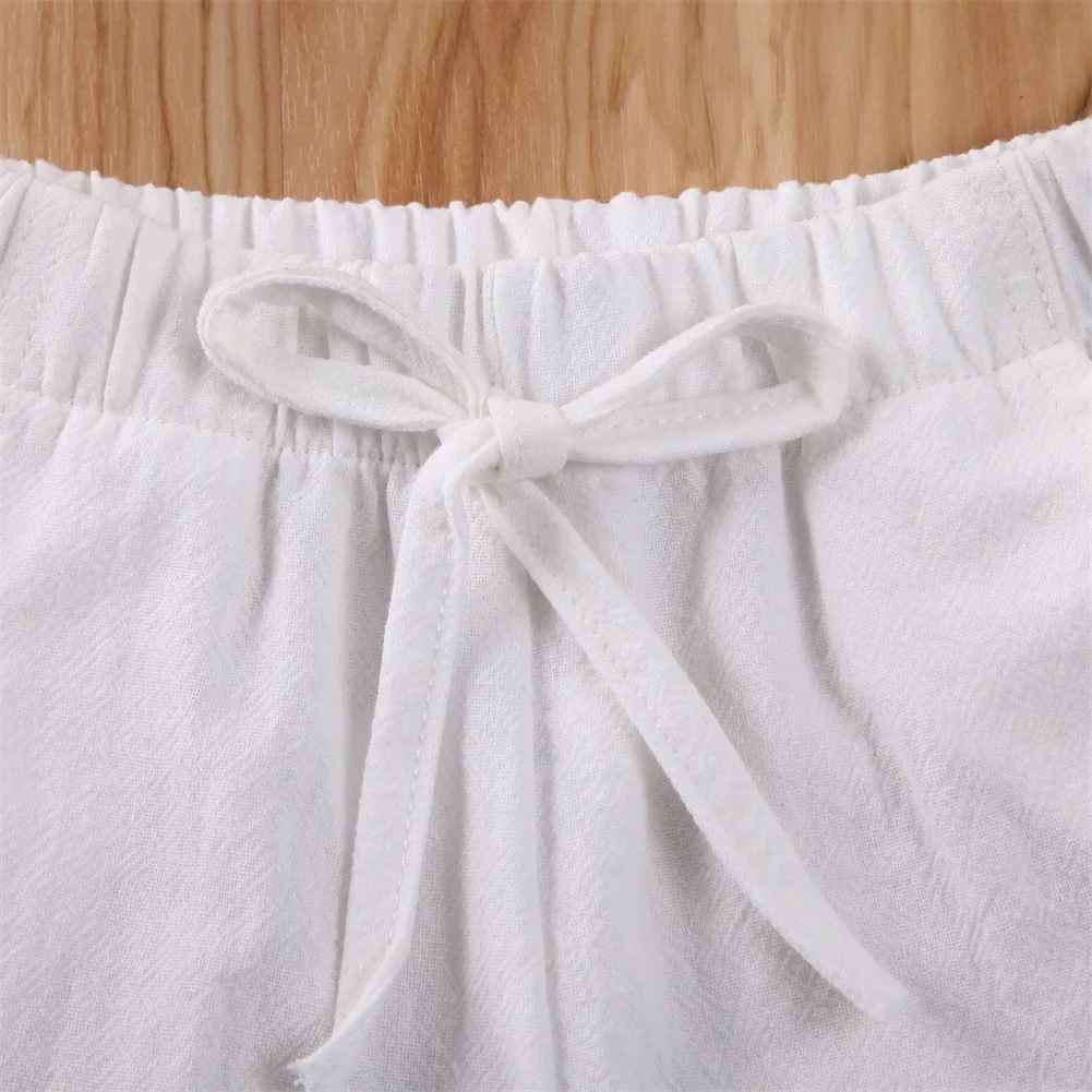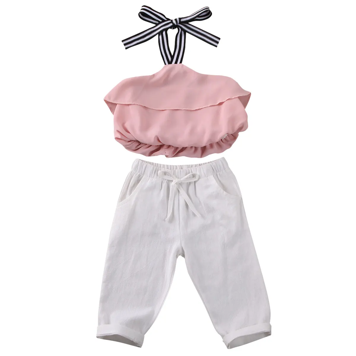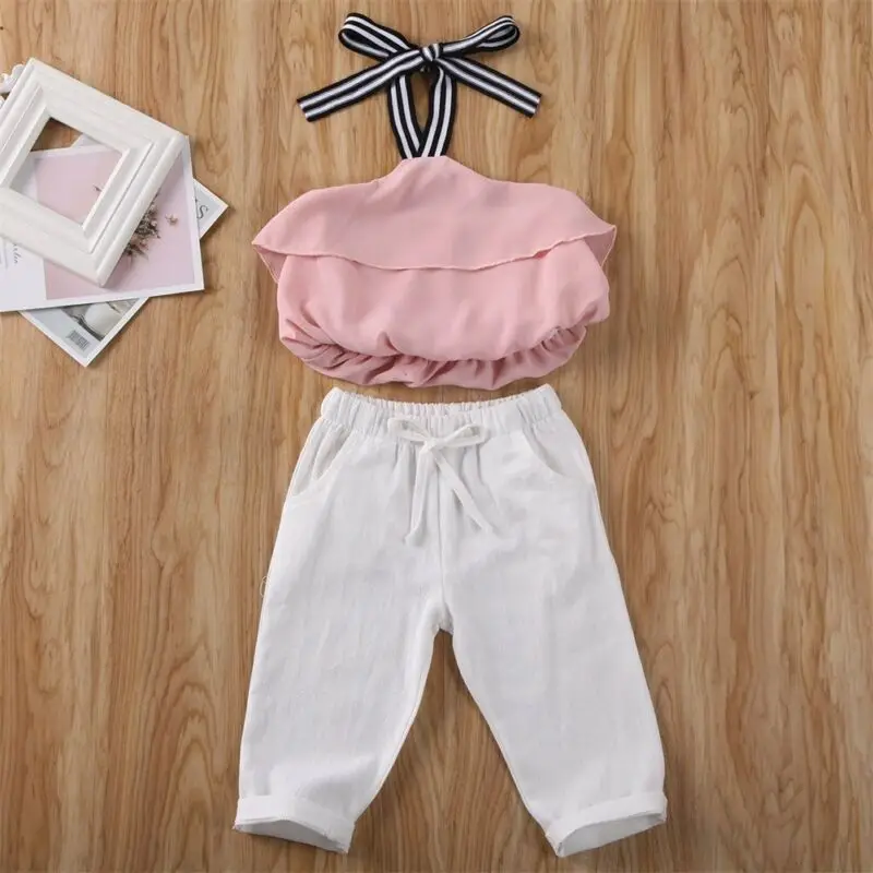 Топ на бретельках с рюшами для маленьких девочек 1-6 лет, рубашка, штаны, комплект одежды