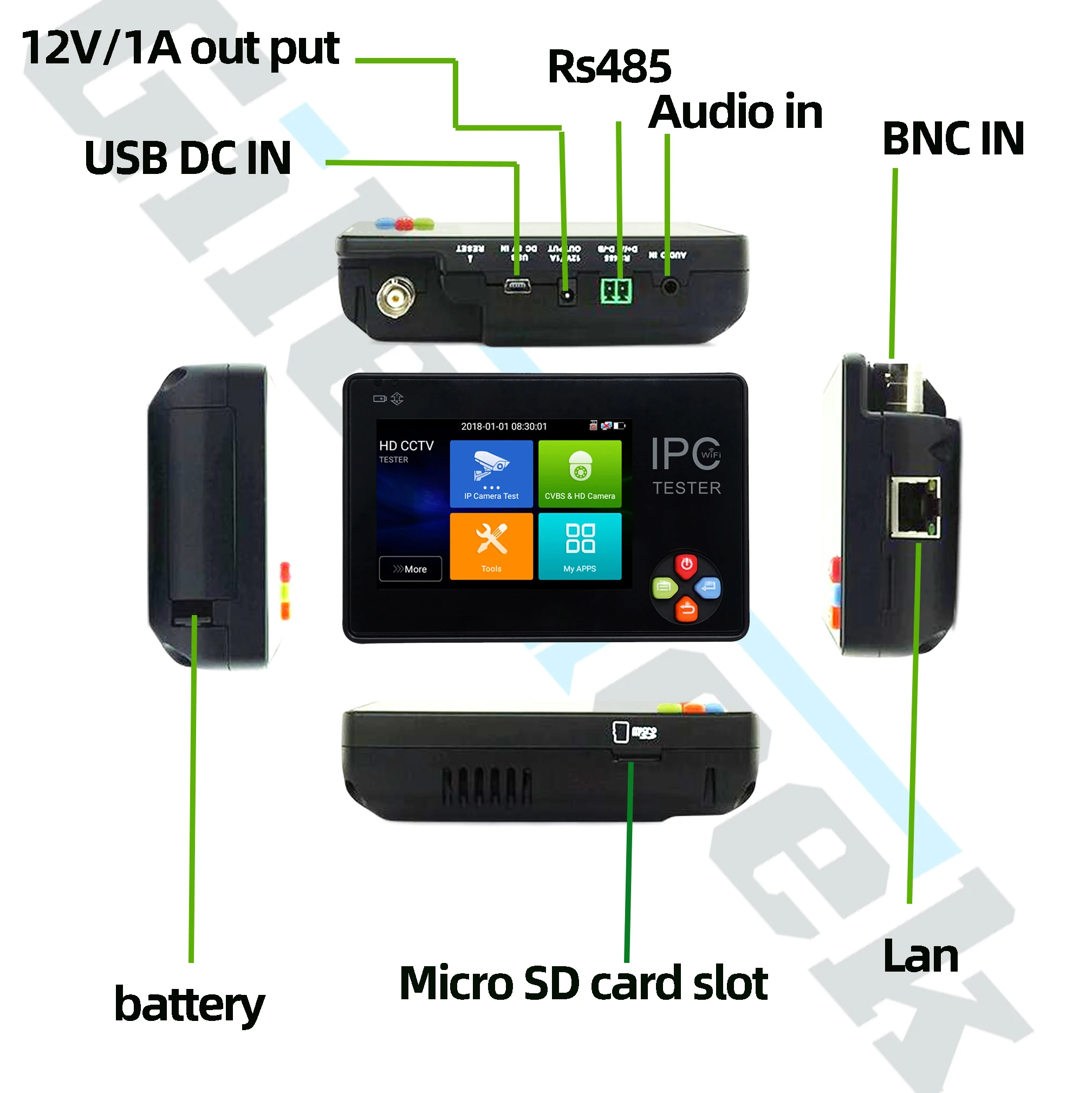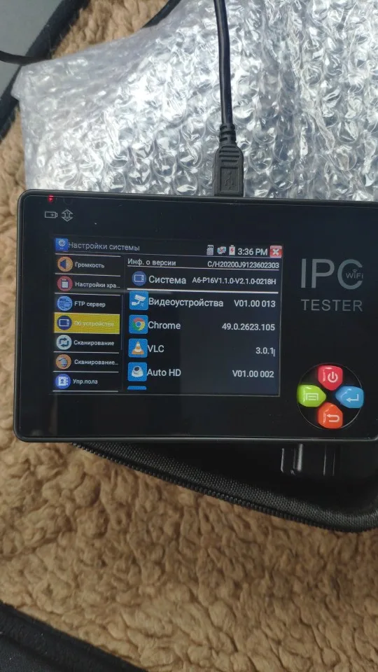 Получил, распаковал. Соответствует описанию. Внешний вид без царапин, сколов. Пока не проверял, но думаю работает. Проверю-дополню отзыв. Нашёл в настройках одну для меня удивительную функцию:Питание выход 5v,12v,48v включено! Я так понял что этот тестер выдаёт питание на PoE IP камеры! Хотя в характеристиках это не указано. Ещё не проверял. По умолчанию встроенный аккумулятор внутри тестера откинут. Открываете боковую крышку и подключаете-сами все увидите. Экран сенсорный отзывчивый. И можно управлять кнопками навигации. Есть WiFi и браузер Google.