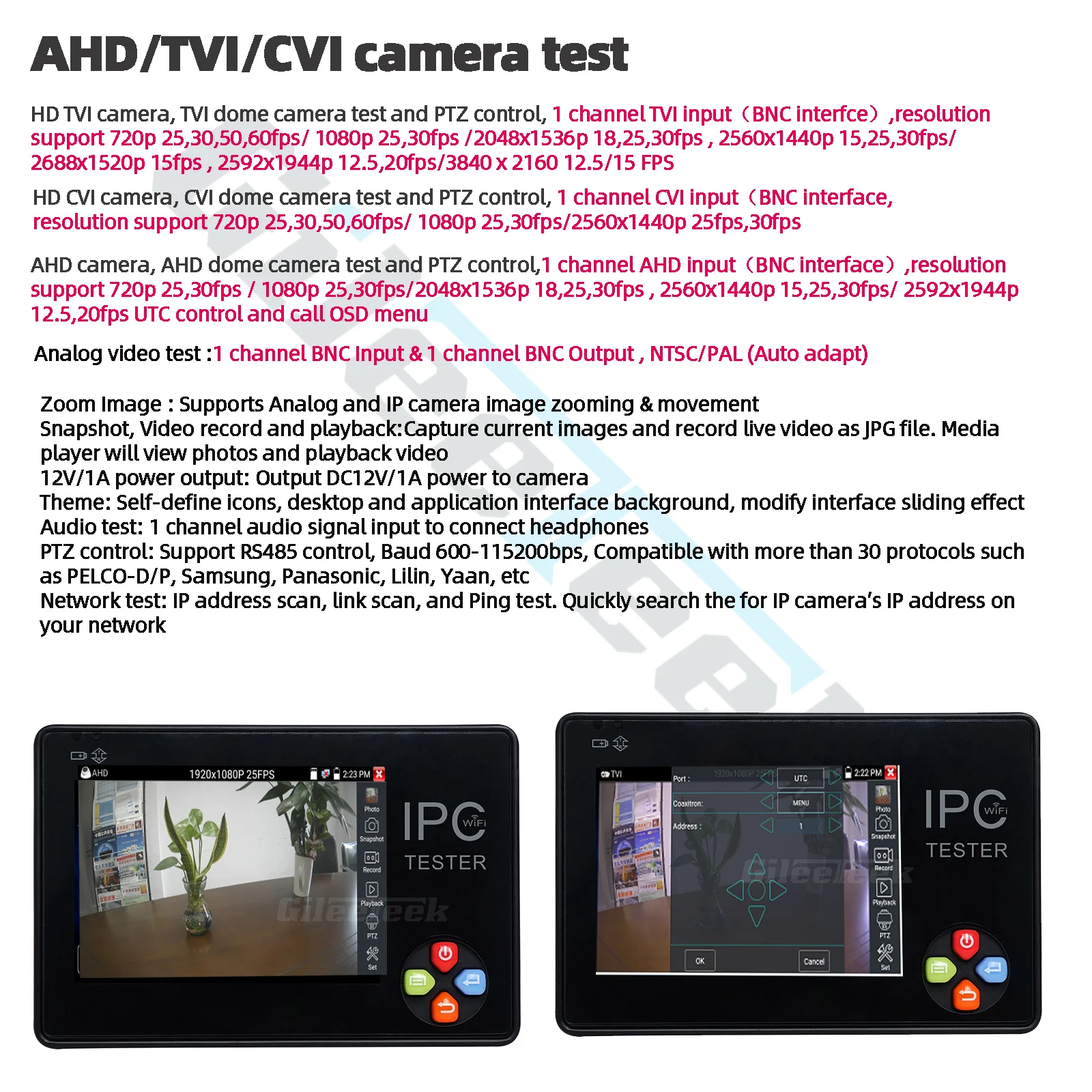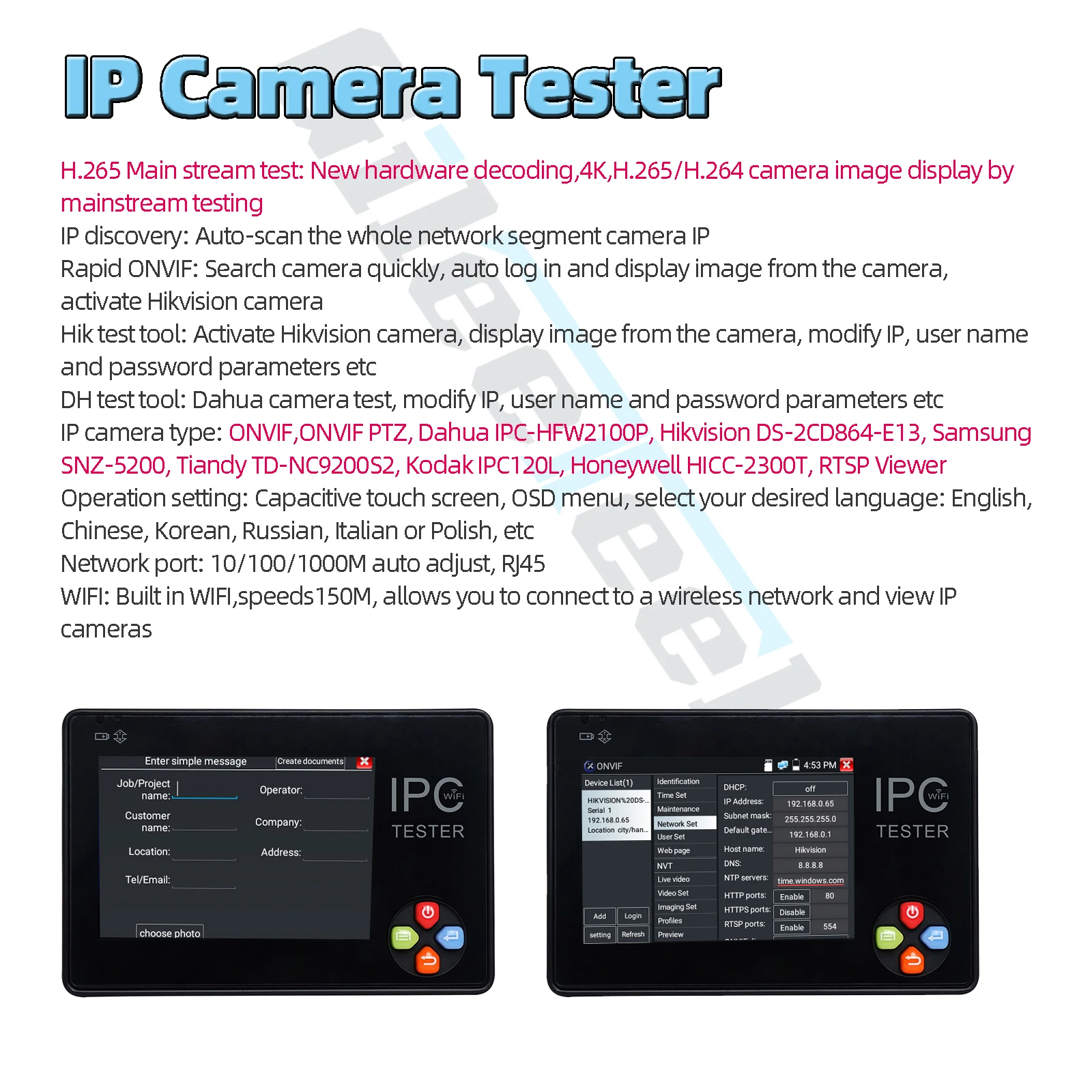 Тестер для камеры IPC1600AHD plus IPC, монитор, 3,5 дюйма, 4K H.265 IP и CVBS IP AHD TVI CVI тестер для камеры Dahua Hikvision ONVIF