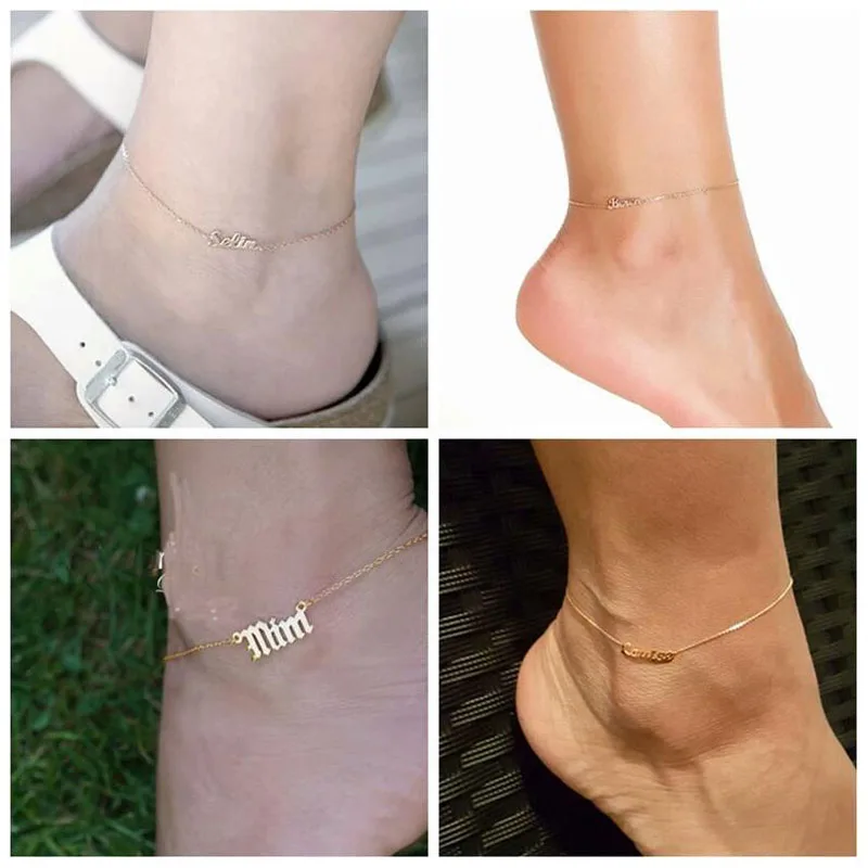 Ножной браслет с именем на заказ, персонализированные ювелирные изд...