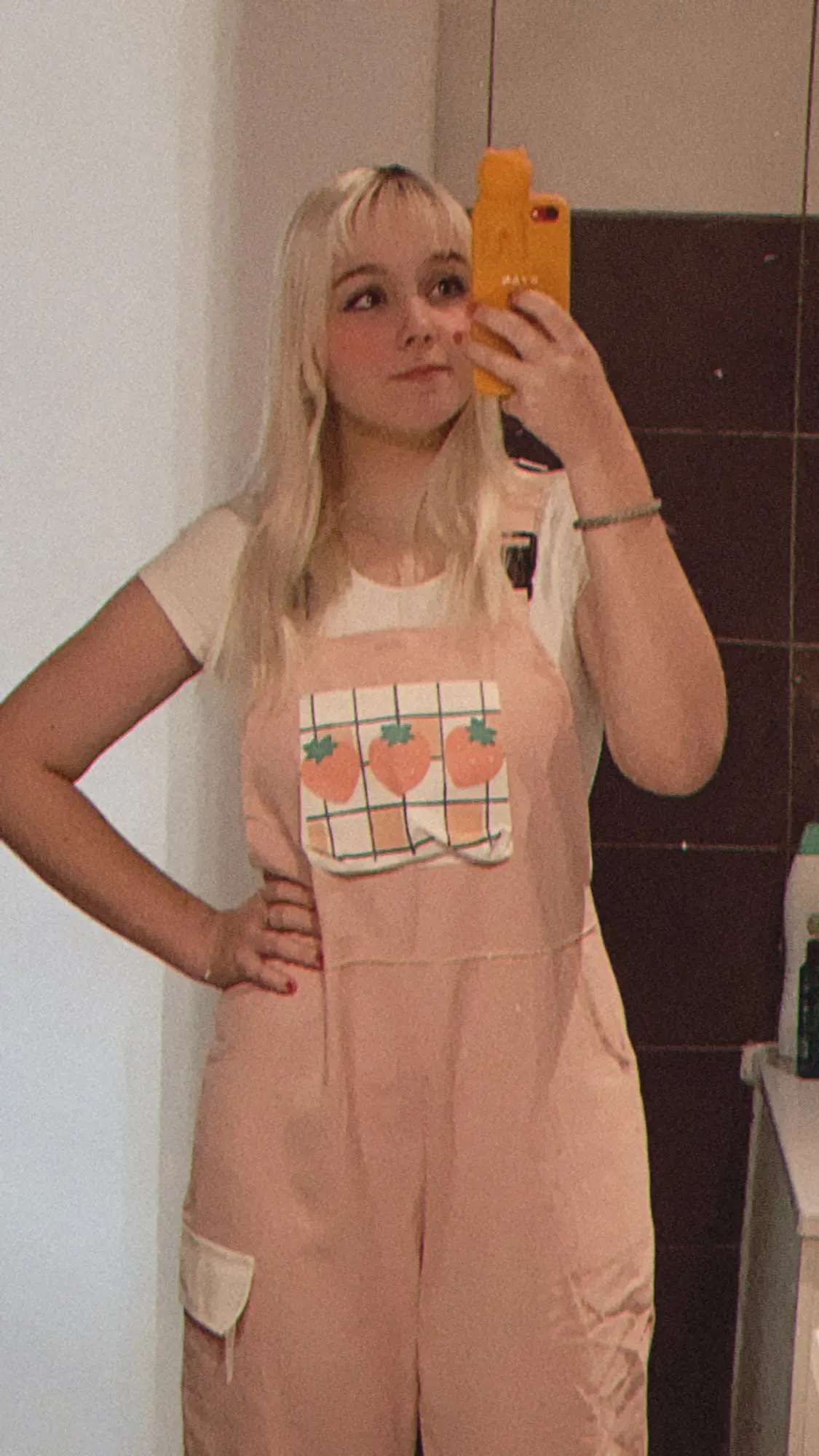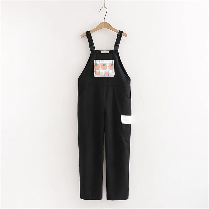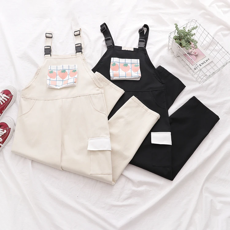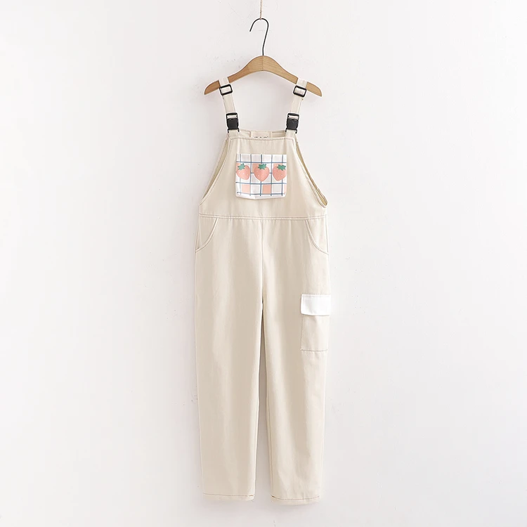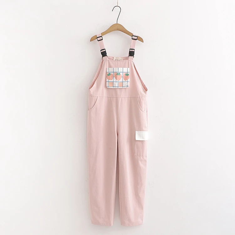 Брюки-карго Harajuku, женские, в клетку, с принтом клубники, повседневные, розовые, комбинезоны, для девочек, милый, винтажный