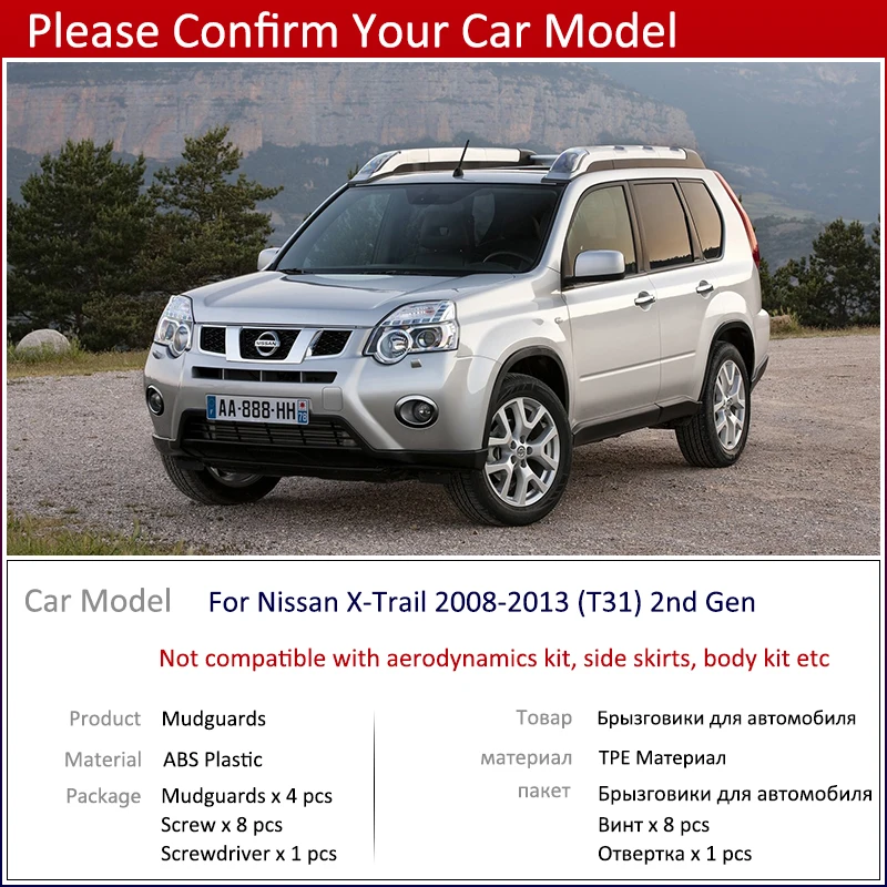 Брызговики для автомобиля Nissan X-Trail 2008 2013 T31, брызговики для передних и задних брызговиков, брызговики, брызговики, аксессуары для X Trail XTrail
