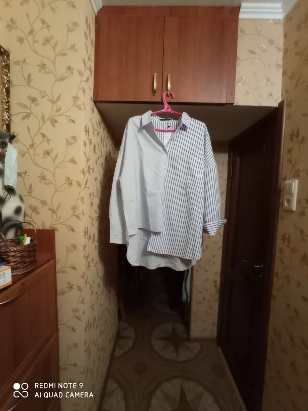 Материал: 100% полиэстерЦвет: черный, синийПосылка входит: 1 блузкаДетали продукта:-Высокий Низкий-Полосатая рубашка-Длинный рукав-Повседневная Свободная-Передние карманы-Неровный край-Отложной воротник-Пуговицы спереди