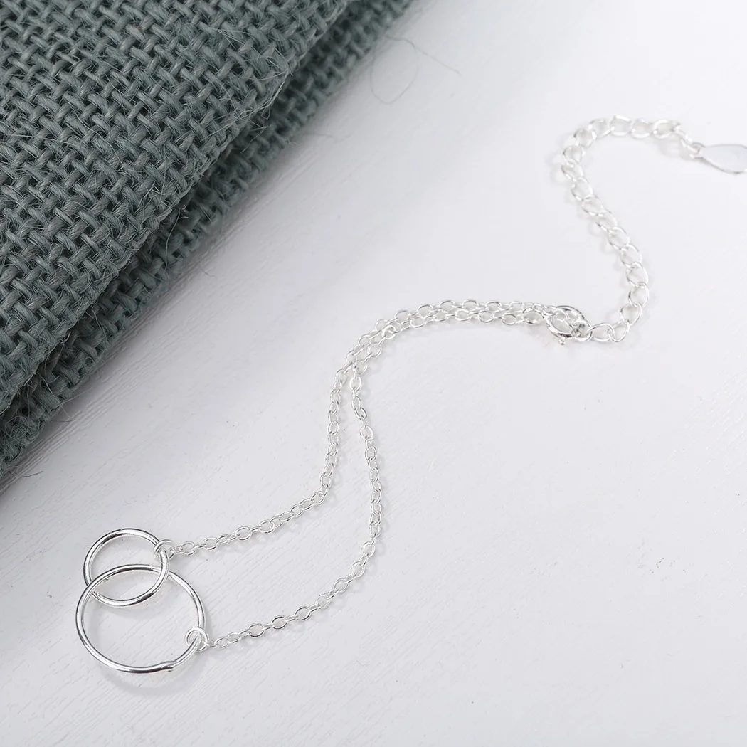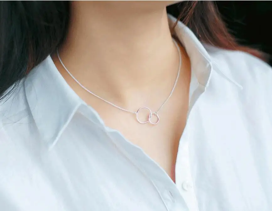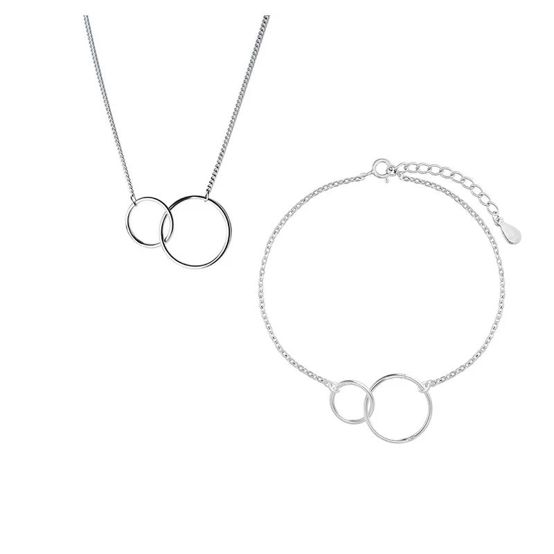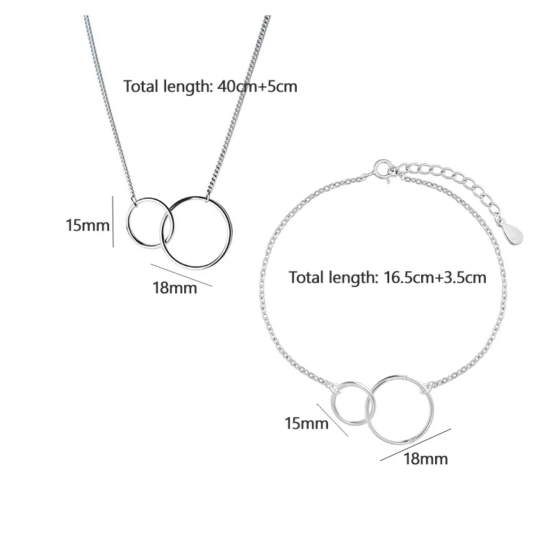 ANENJERY, минималистичное 925 пробы Серебряное двойное ожерелье + браслет, ювелирные наборы для женщин, ювелирные изделия для сестры
