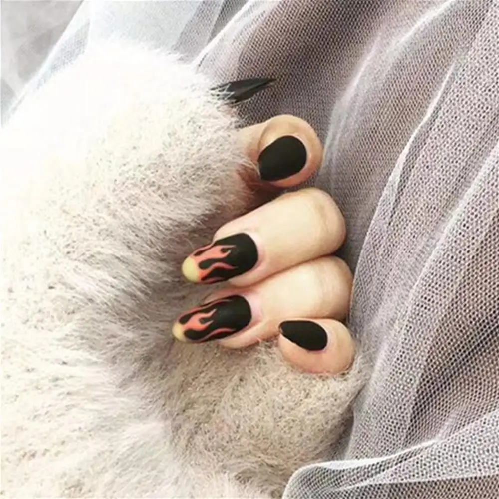 Накладные ногти, 24 шт.кор., очаровательные, длинные, в форме пламени, пригодные для носки, накладные ногти, с квадратной головкой, для самостоятельной сборки, съемный набор инструментов для дизайна ногтей