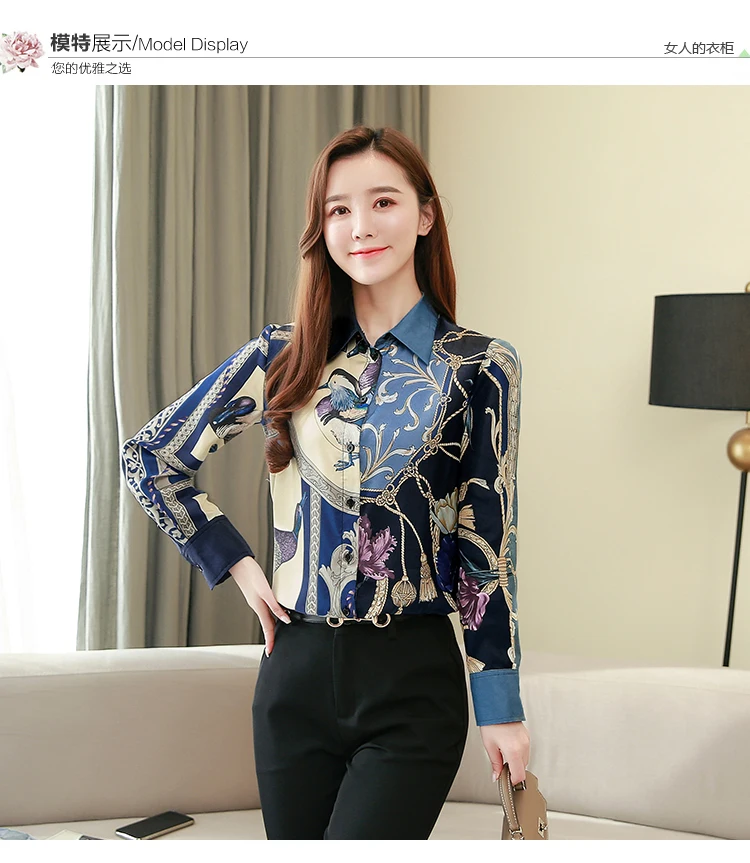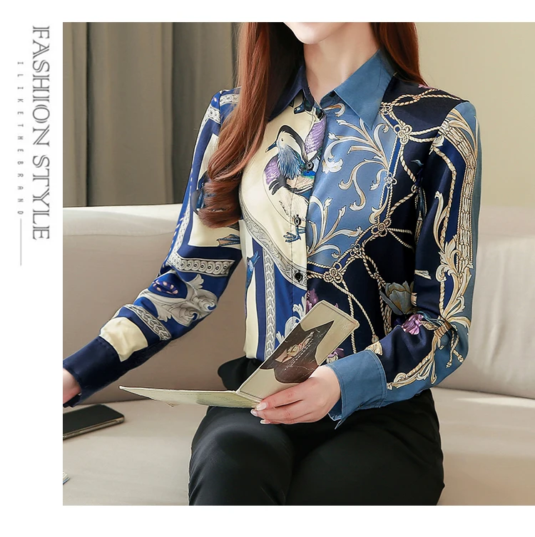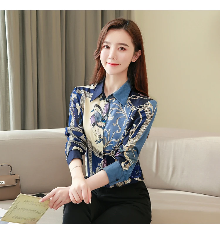 В винтажном стиле, с длинным рукавом шелковая блузка для женщин; Сезон весна; Модная 2020 офис леди рубашка высокого качества для девочек; Свободные плюс Размеры Топы 8425 50