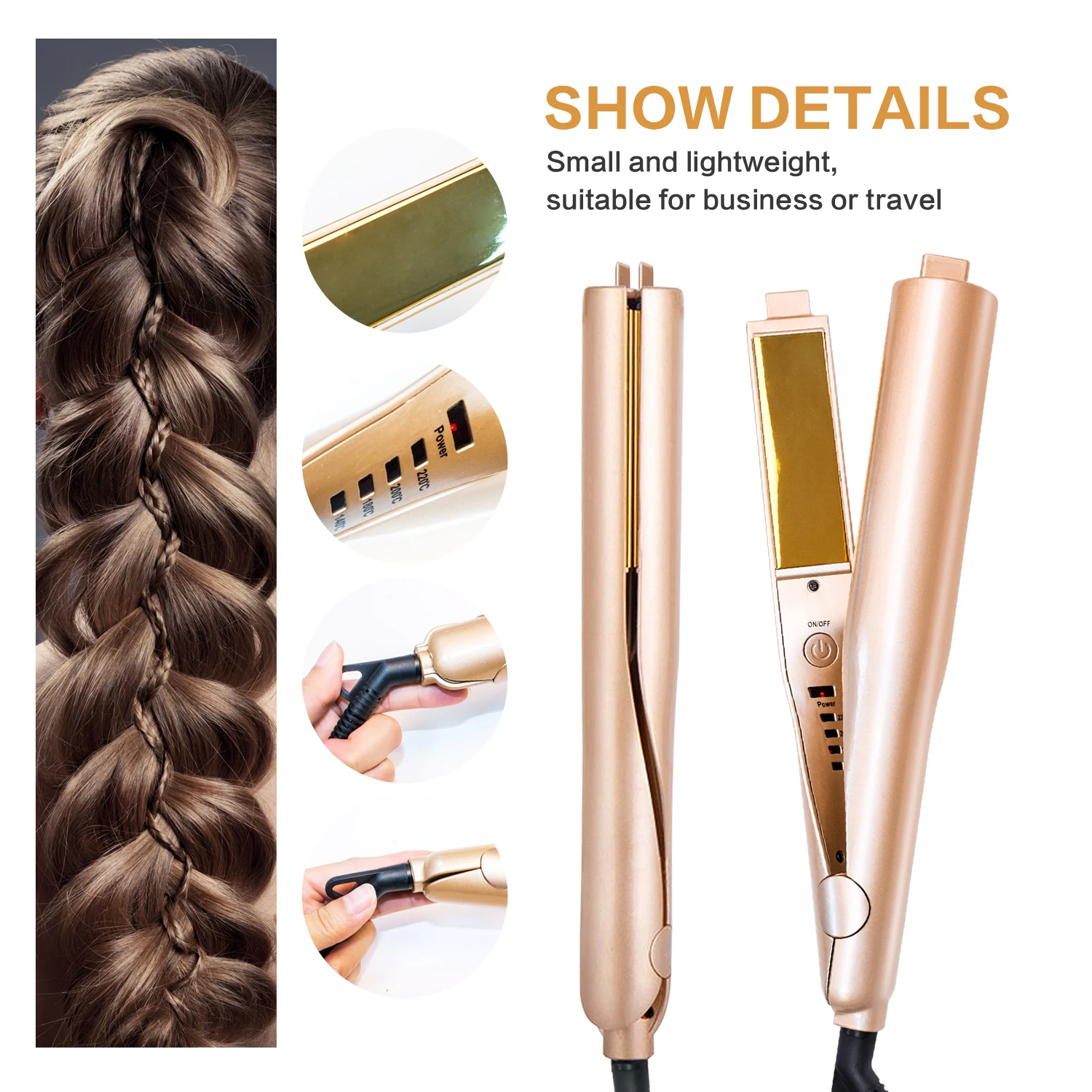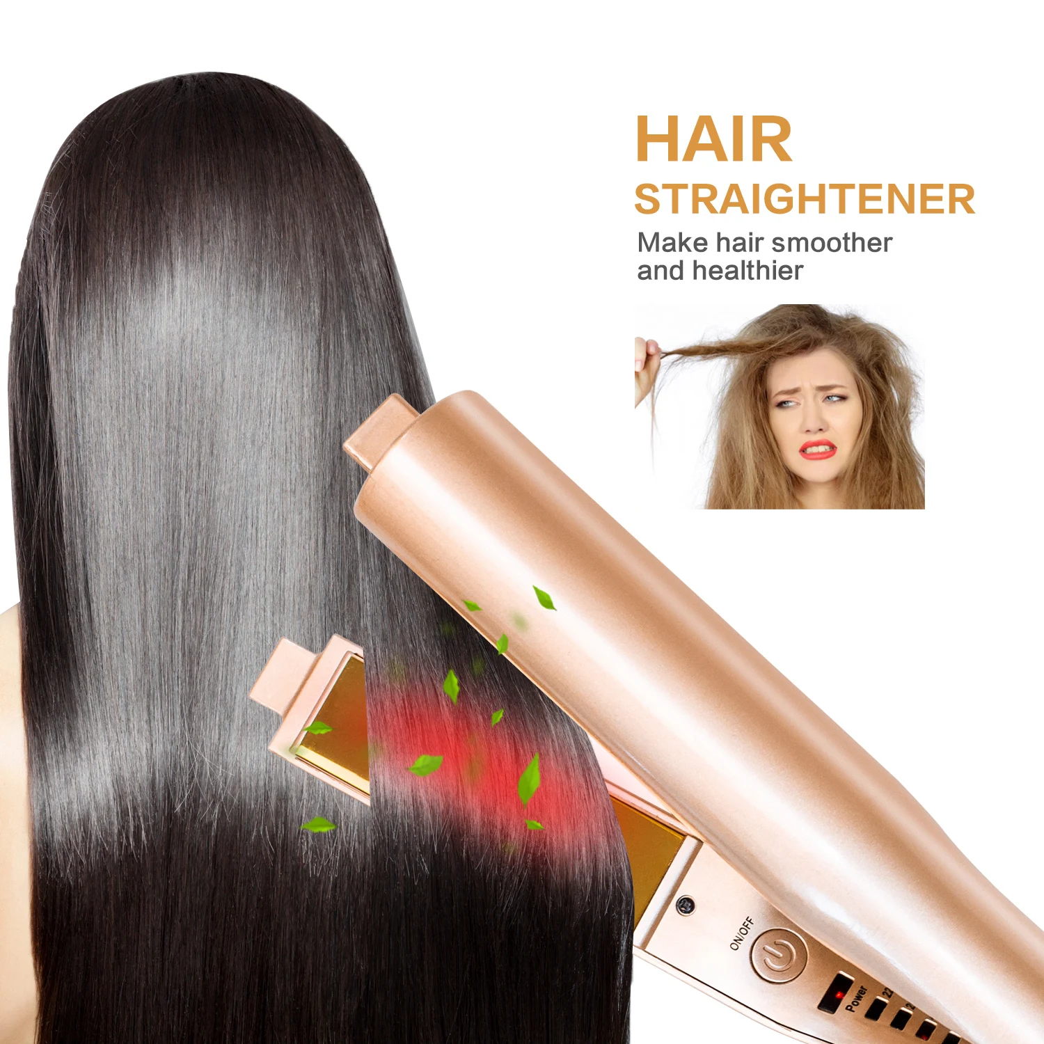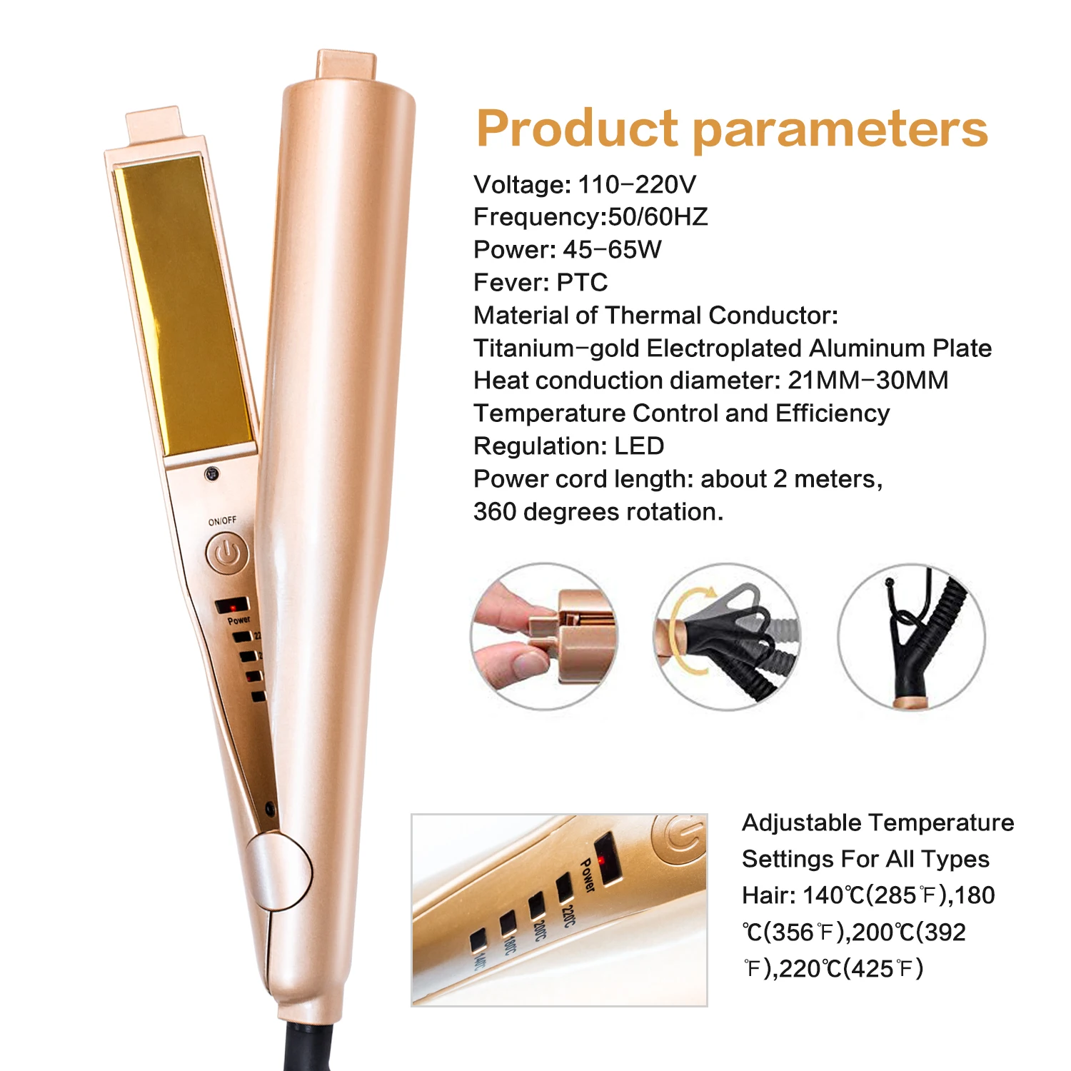 1. Завить и выпрямить 2 в 1, натуральные и элегантные волосы, простой и классический стиль, выглядит красиво.2.PTC нагреватель с керамическим покрытием поможет вам создать гладкую и профессиональную отделку вашего стиля волос.3,360 градусов вращающийся шнур питания, который прост в использовании и безопасен в эксплуатации.4. Плавающий керамический плавающий пласт, защищающий волосы от повреждений.
