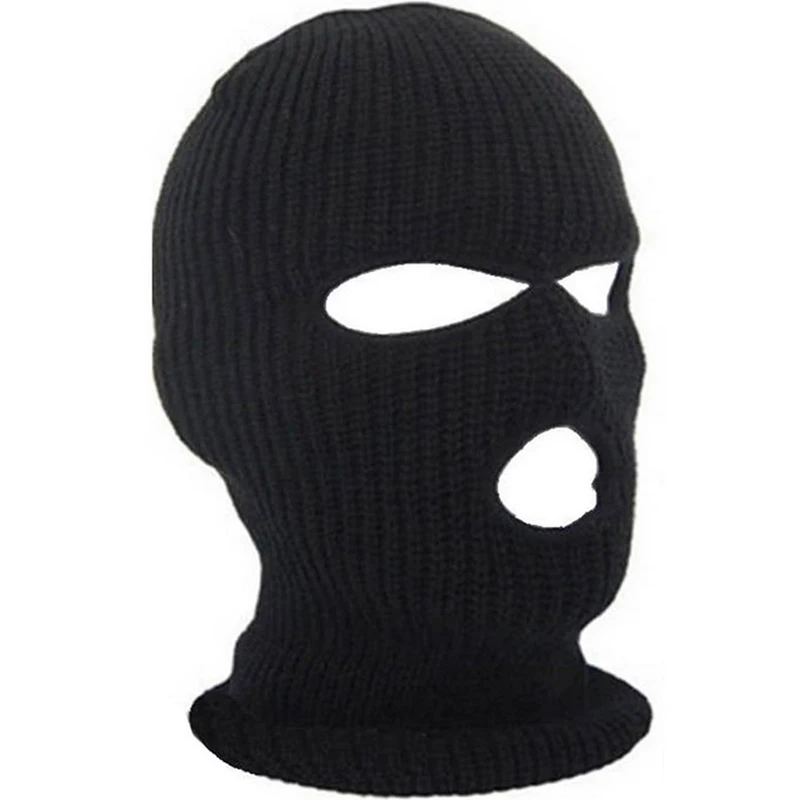 Балаклава черная с тремя прорезями, эластичная с вязаная шапка зима, для снега