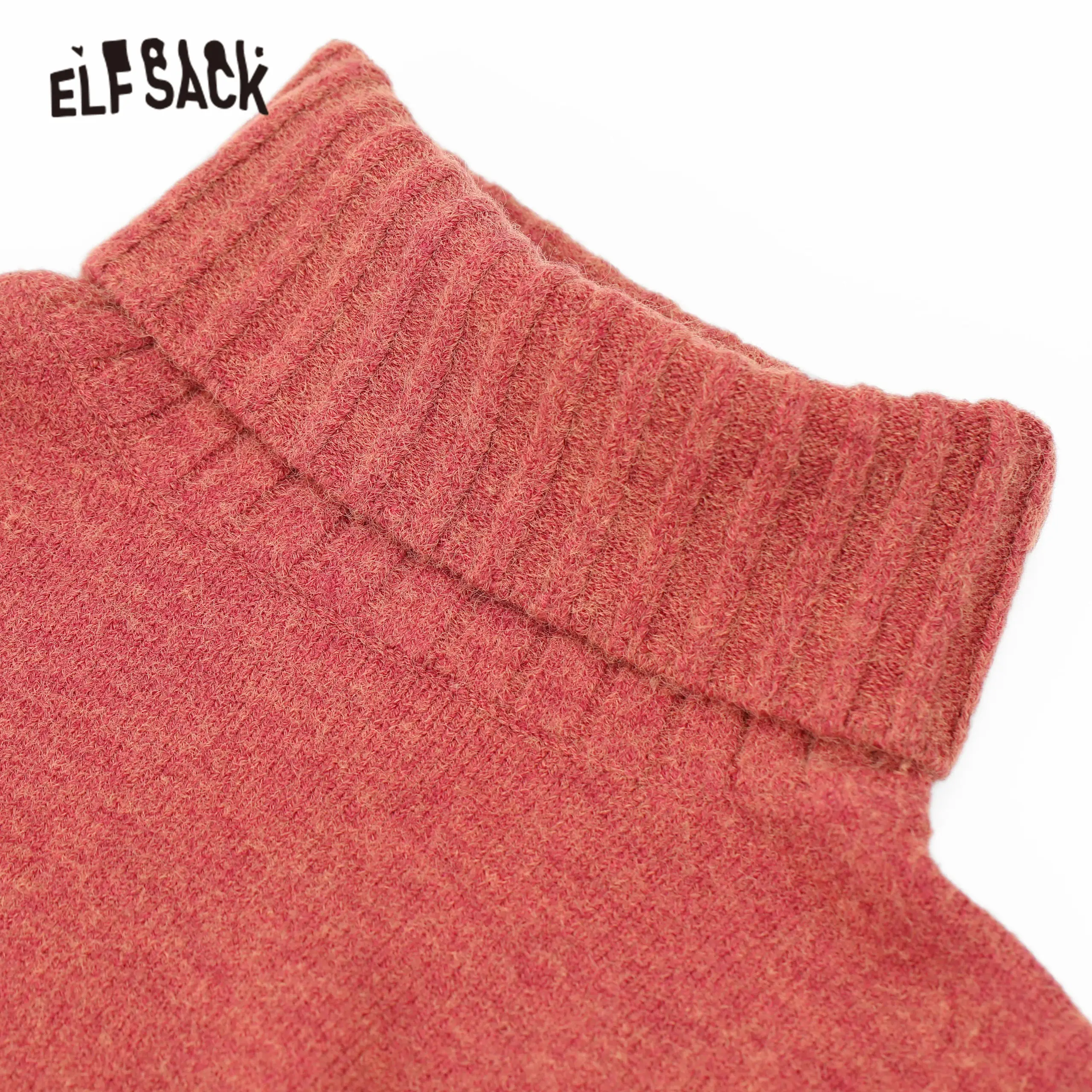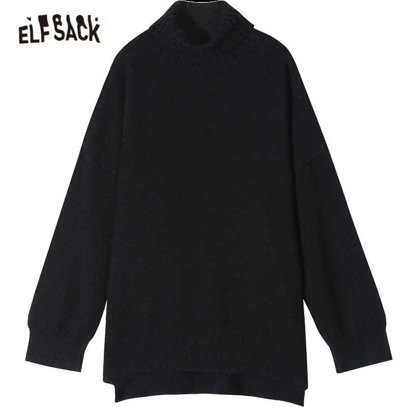 Женский вязаный пуловер ELFSACK, разноцветный однотонный Повседневный пуловер с рукавами-фонариками и высоким низом, зима 2020