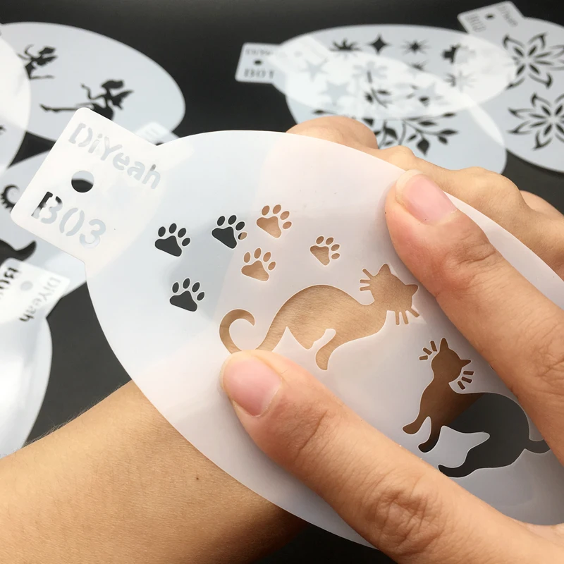 Профессиональный трафарет для рисования лица и тела, дельфин, кот, эльф, день рождения, Хэллоуин для детей, временный шаблон для рисования лица, макияж, B01-B09