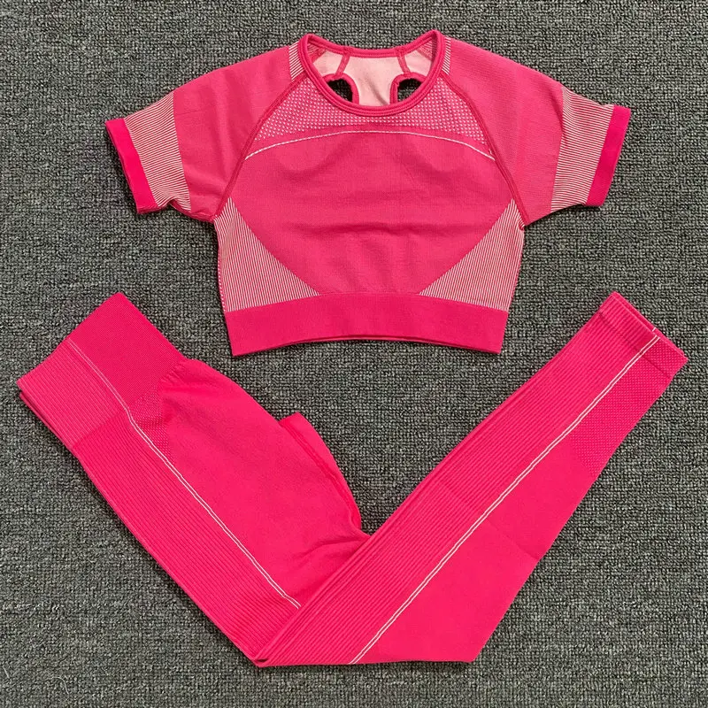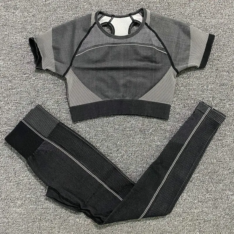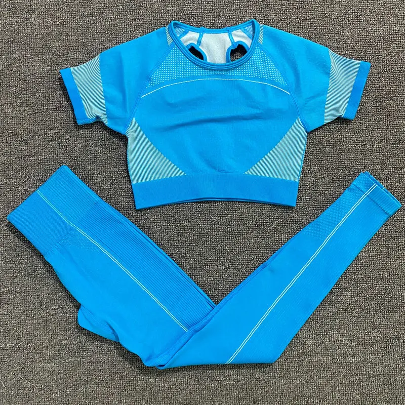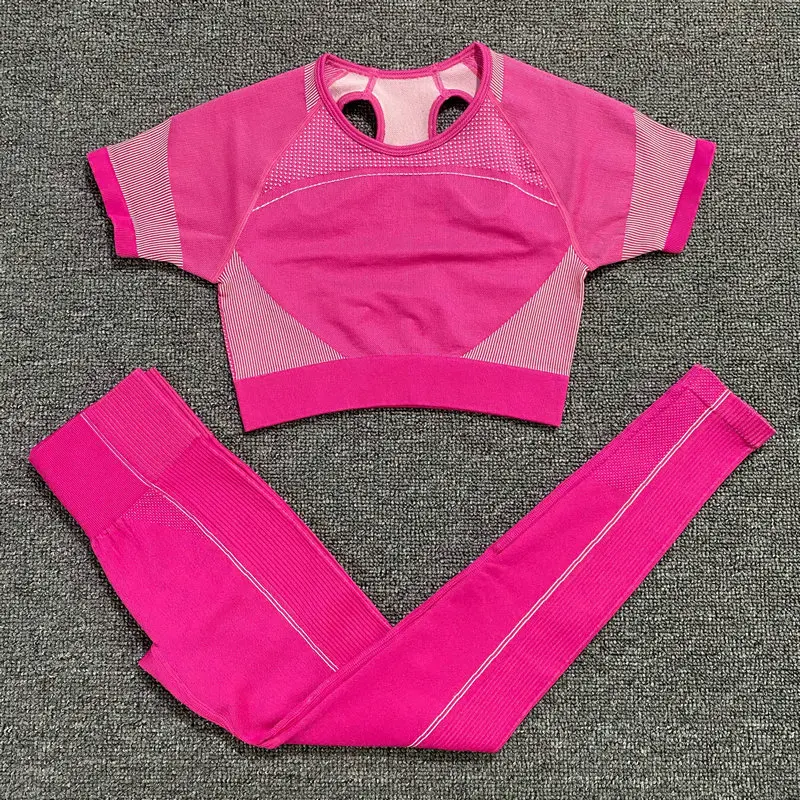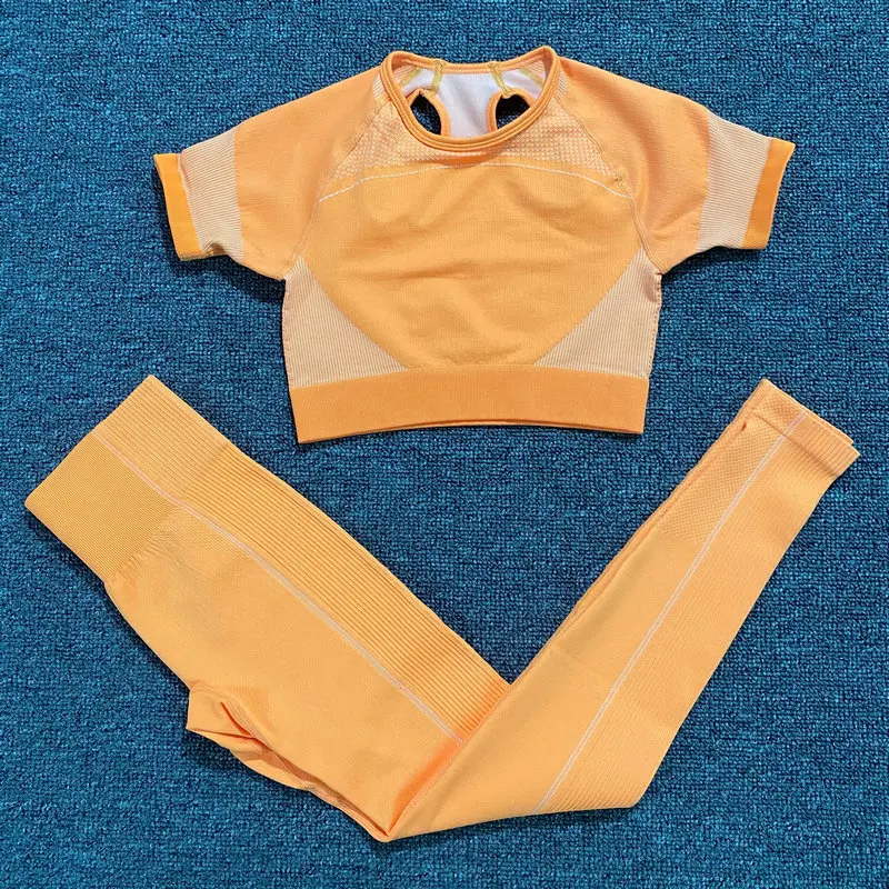 Ультрабесшовный комплект для йоги, женская одежда для фитнеса, тренировочные штаны, спортивная одежда, короткий топ с коротким рукавом, рубашки, леггинсы для спортзала, спортивные костюмы