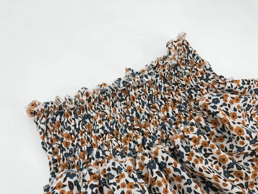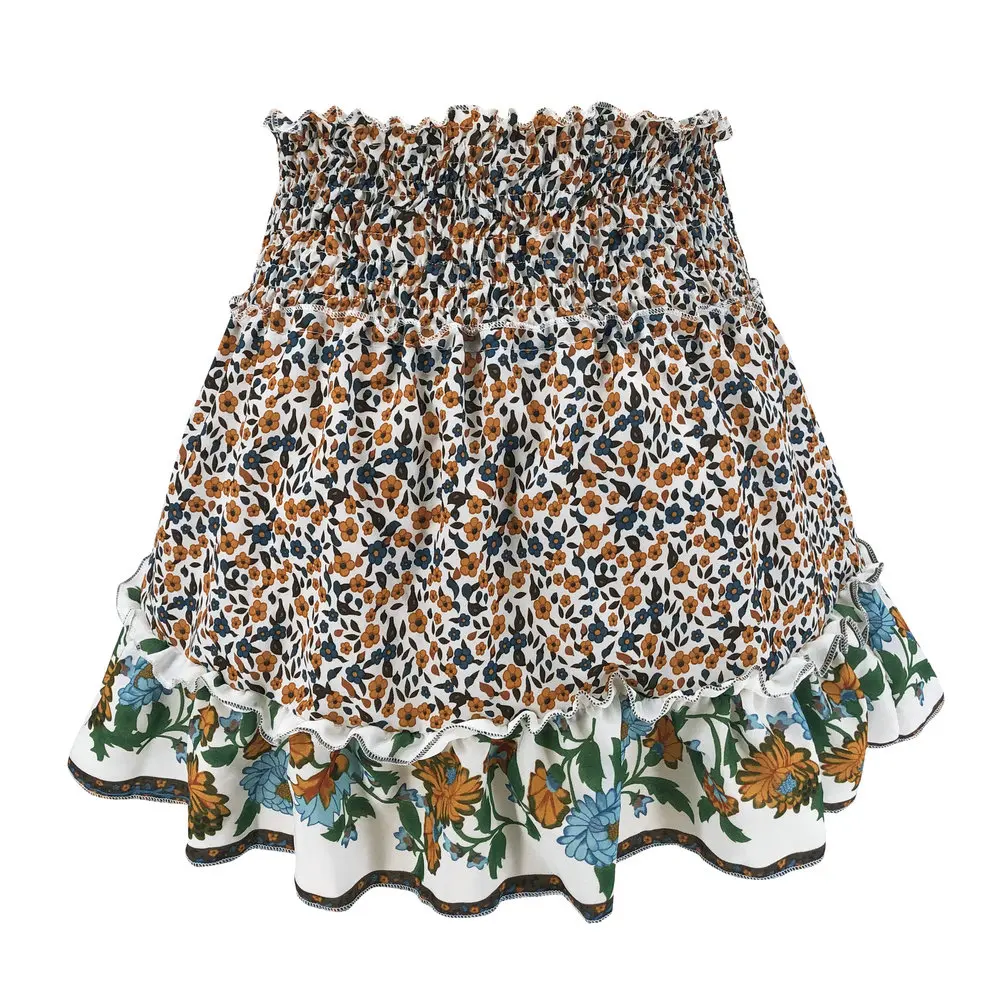 Женская Повседневная юбка Бохо, эластичная короткая юбка с цветочным принтом и высокой талией, гофрированная пляжная юбка