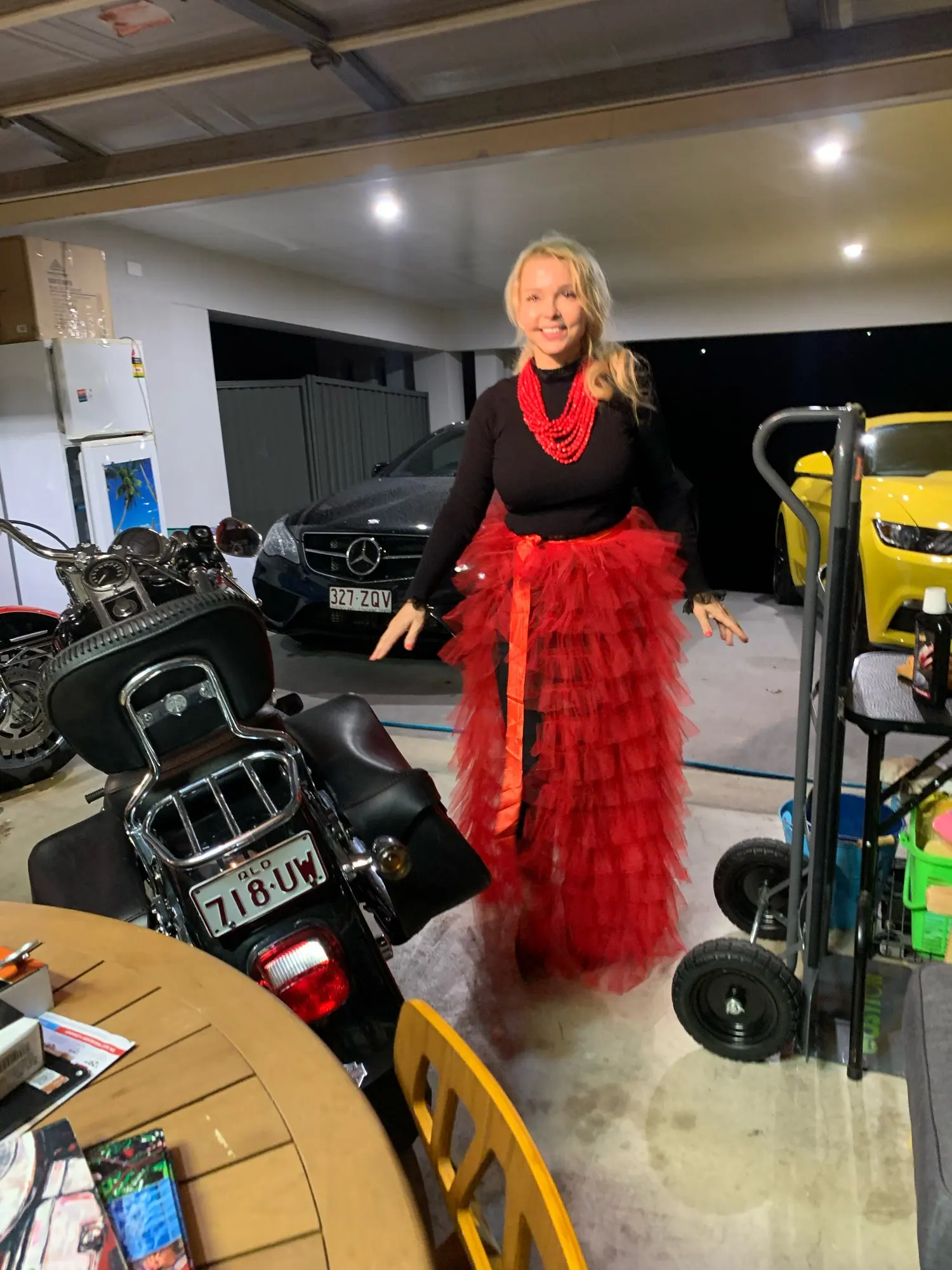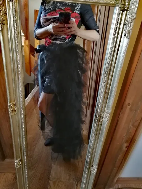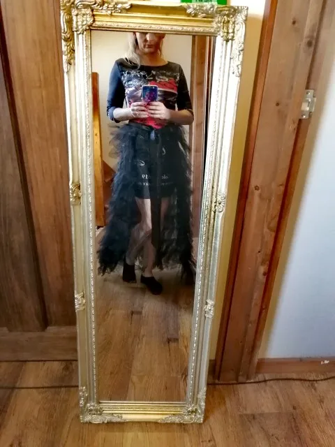 Рост 1,60, рост 90-70-90, Австралийский Размер маленький, выглядит хорошо. Я купил Размер M (средний) и немного изменил его, чтобы он подходил мне лучше-Укороченный 2 верхних слоя, поэтому он не выглядит очень «большим и громоздким» вокруг бедер. Есть фотографии до и после изменения.
