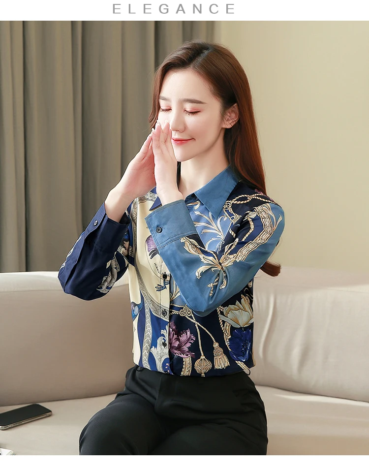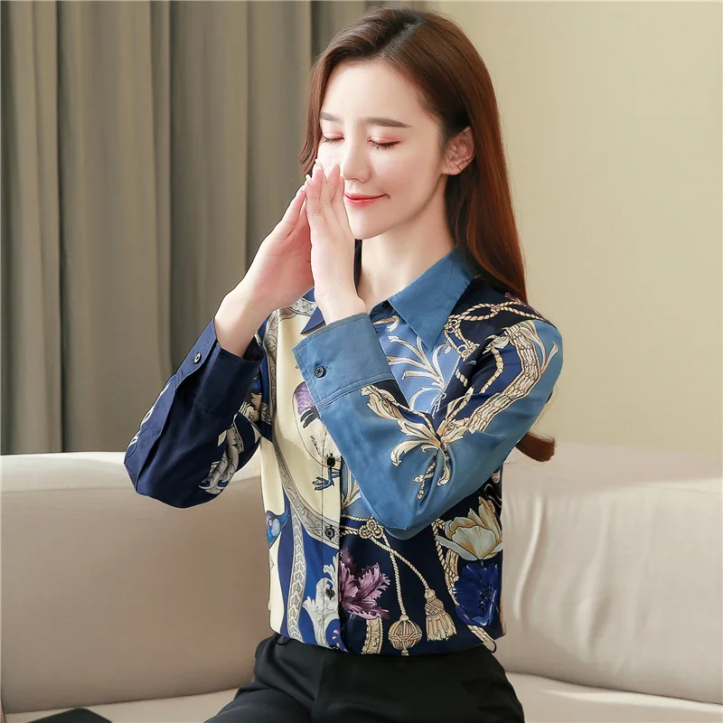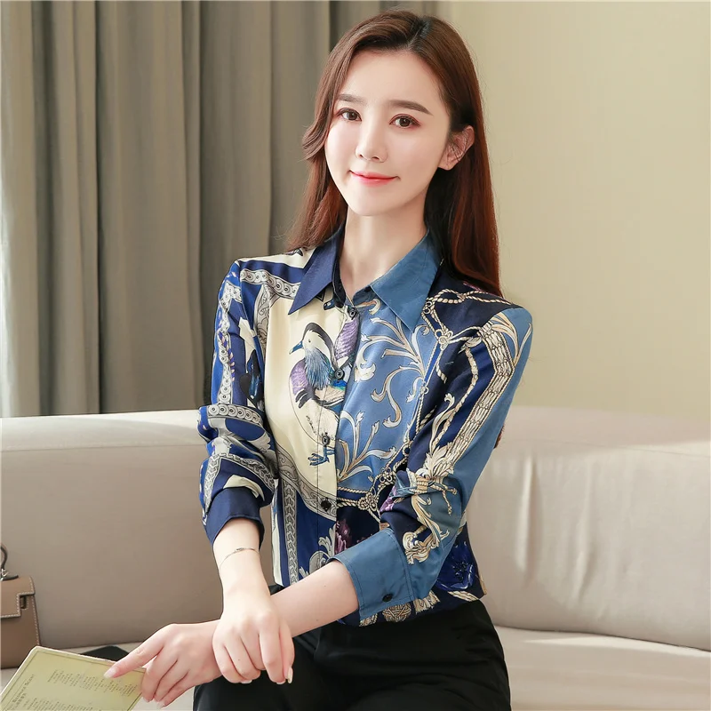 Высококачественная одежда, винтажная шелковая блузка с длинным рукавом, Женская Весенняя мода 2022, Офисная Женская рубашка, свободные топы больших размеров 8425 50