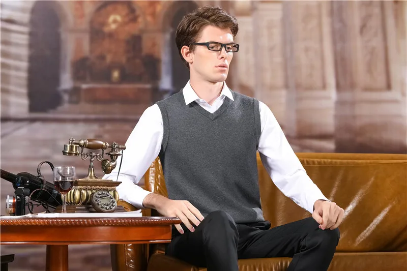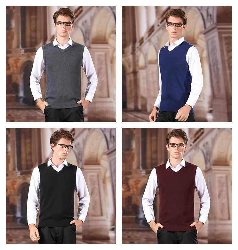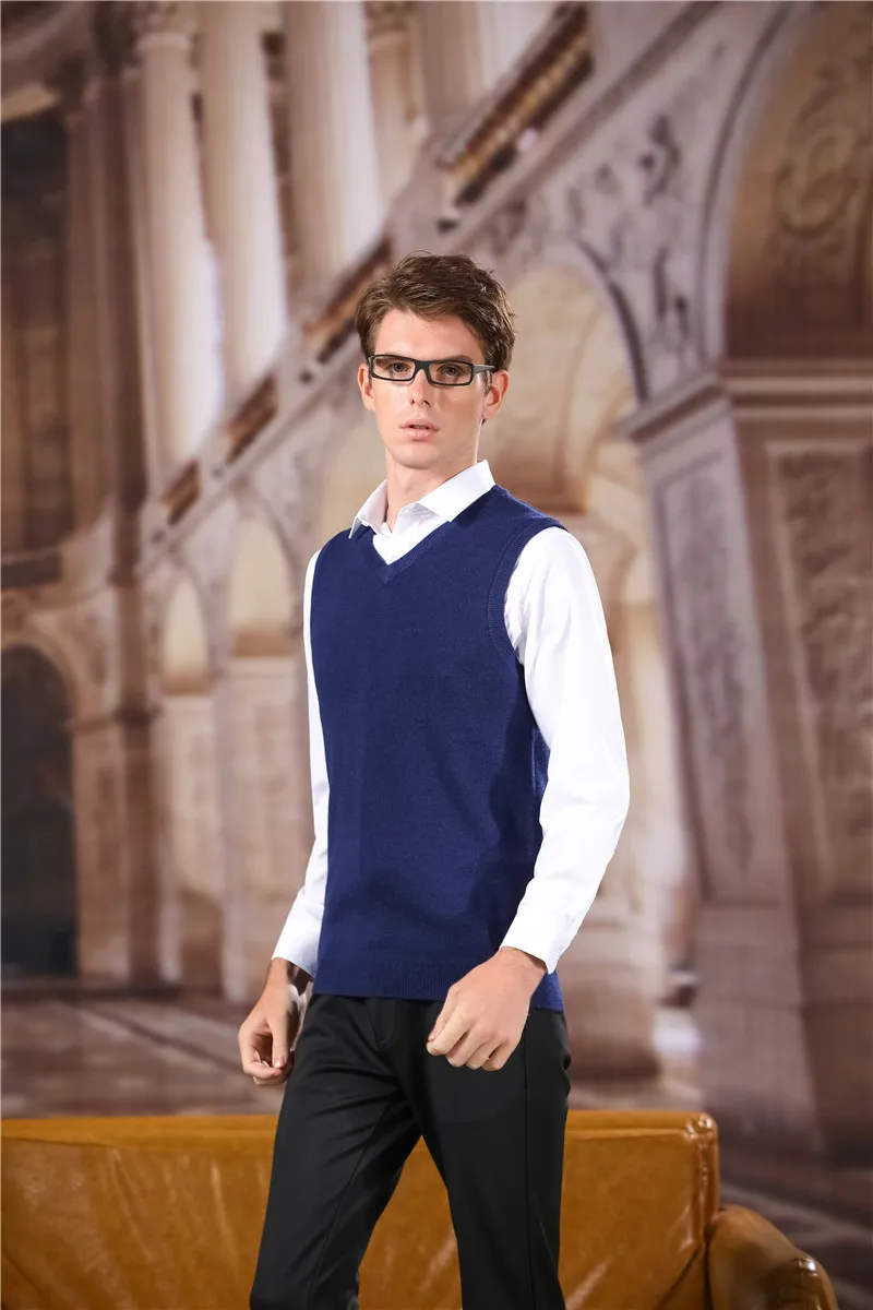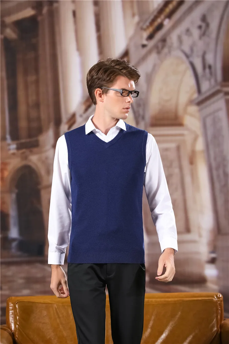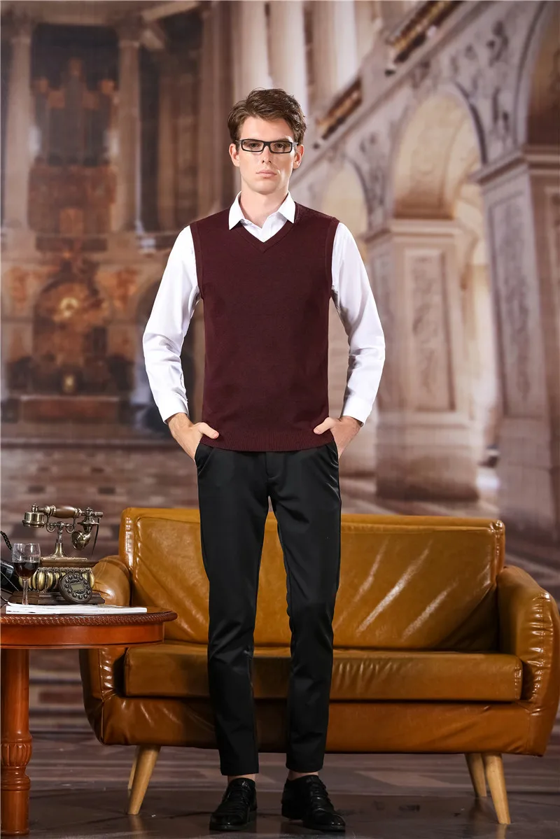 Жилет мужской однотонный с V-образным вырезом, классический шерстяной жилет, брендовая уличная одежда, U1043, осень