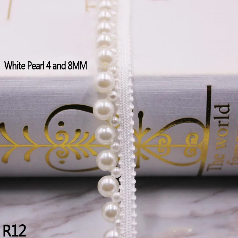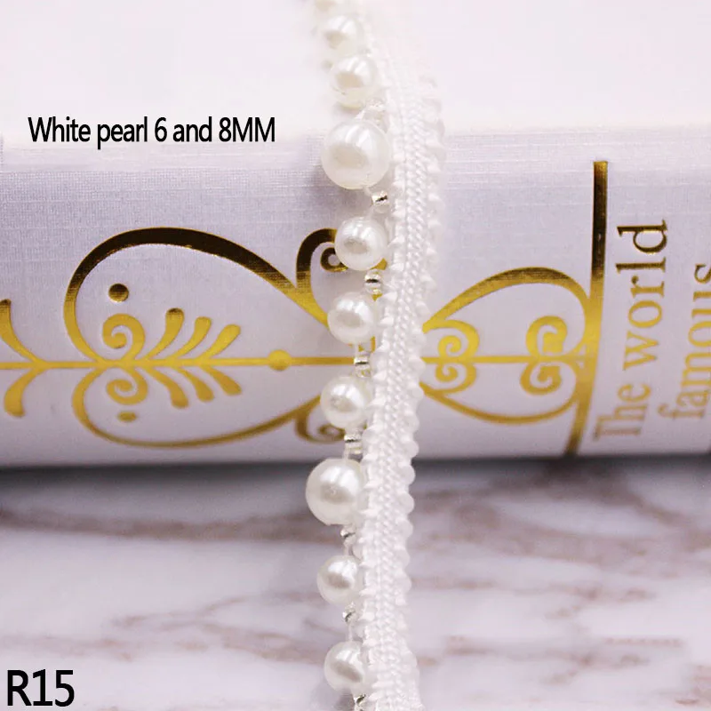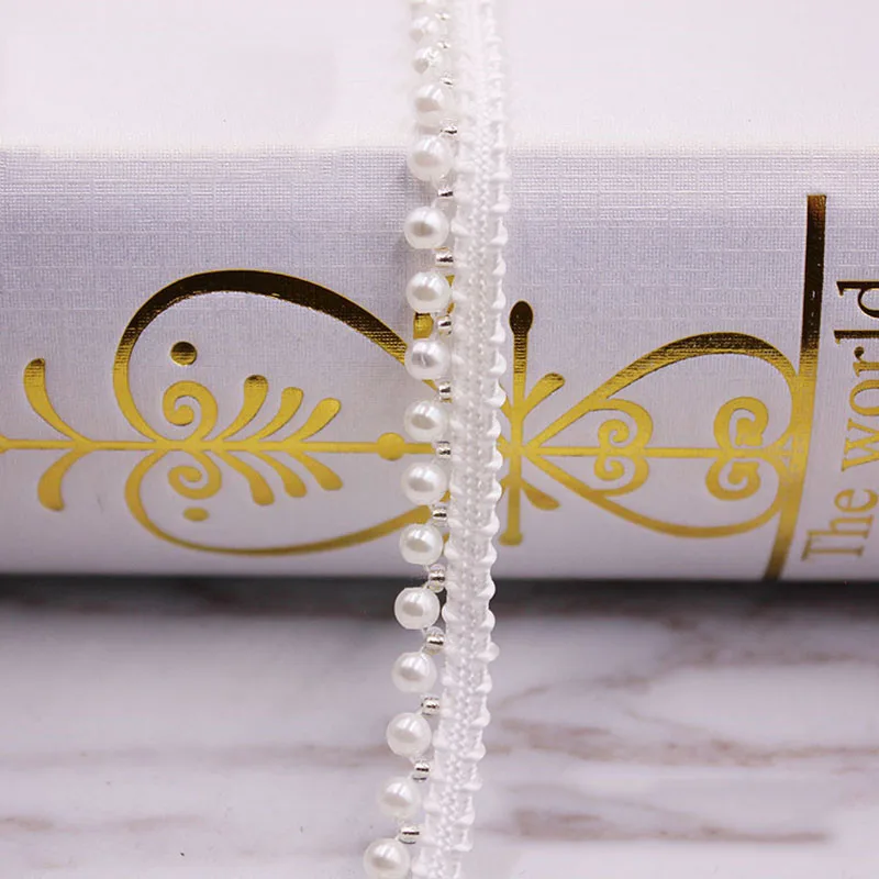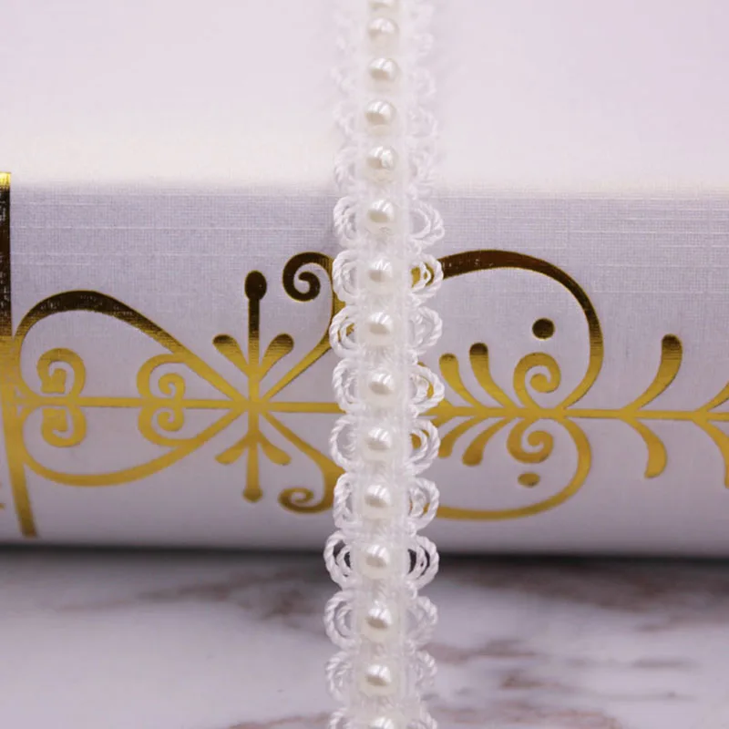 1yards пошиве кружева с жемчугом бисером платье одежды аксессуары ручной работы Вышитые ленты ленты DIY Ткань