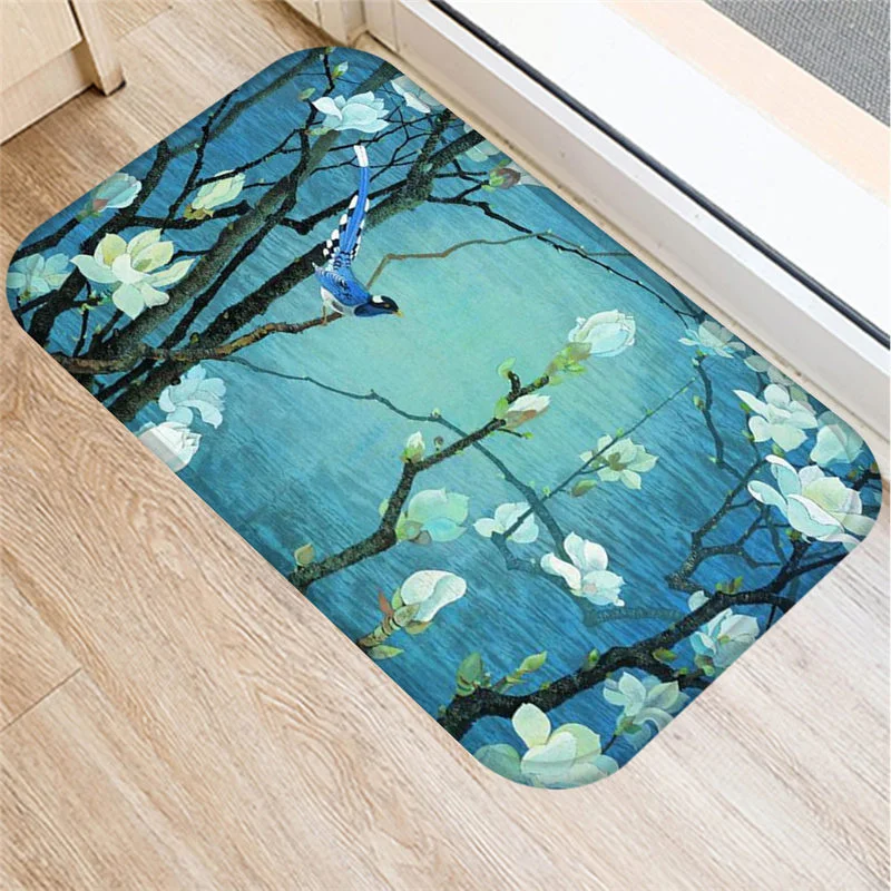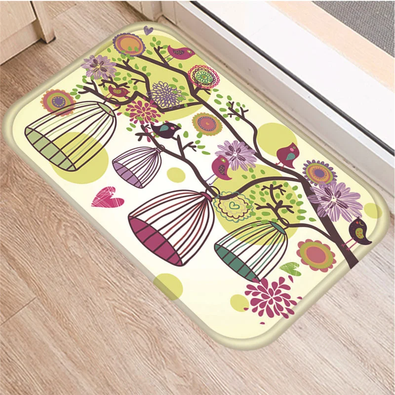 1 шт. 40*60 см Дерево цветочным узором птица анти-скольжения замши Ковер Дверной коврик на открытом воздухе Кухня Гостиная коврик ковер 48299