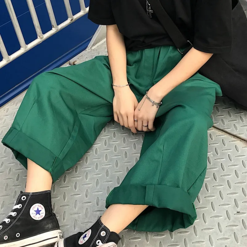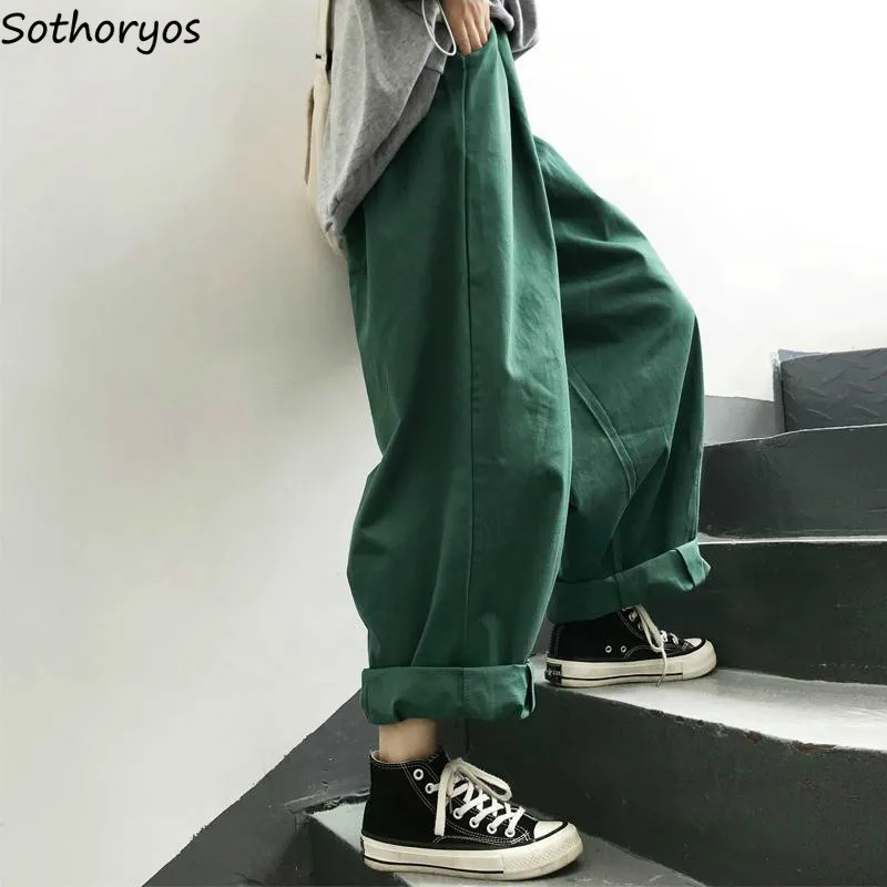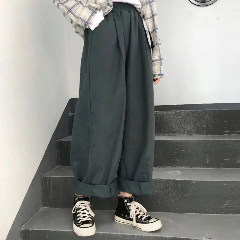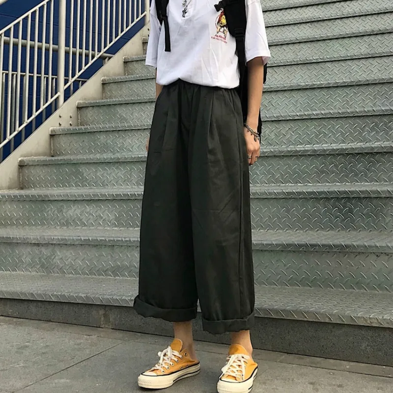 Женские брюки Ulzzang, универсальные брюки до щиколотки в Корейском стиле, с широкими штанинами, для отдыха, однотонные, стиль Харадзюку