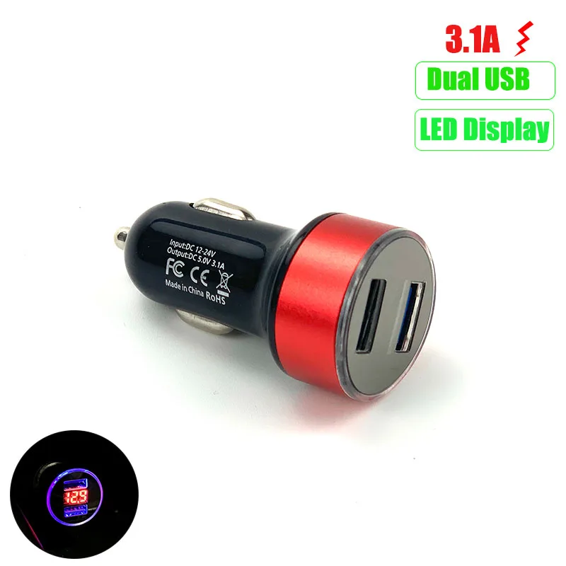 3.1A двойной USB Автомобильное зарядное устройство светодиодный дис...