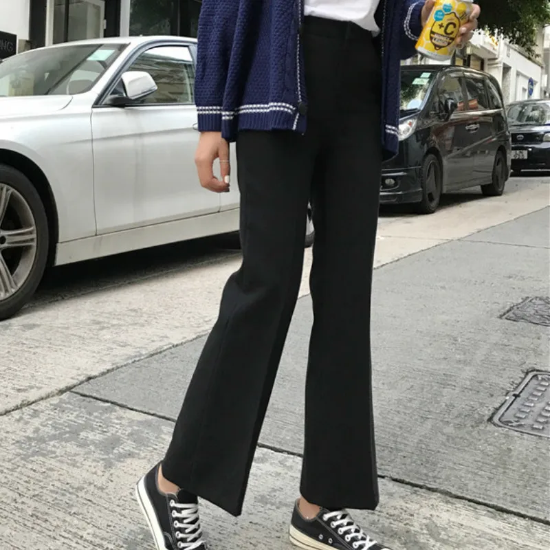 Брюки женские классические черные элегантные, свободные прямые простые удобные штаны с завышенной талией в Корейском стиле для отдыха, универсальные