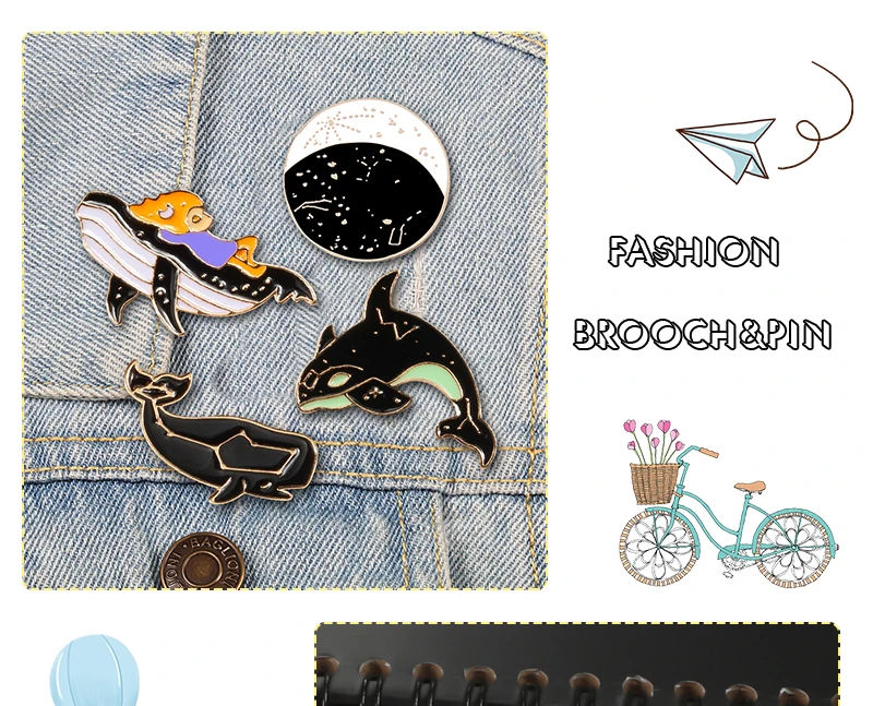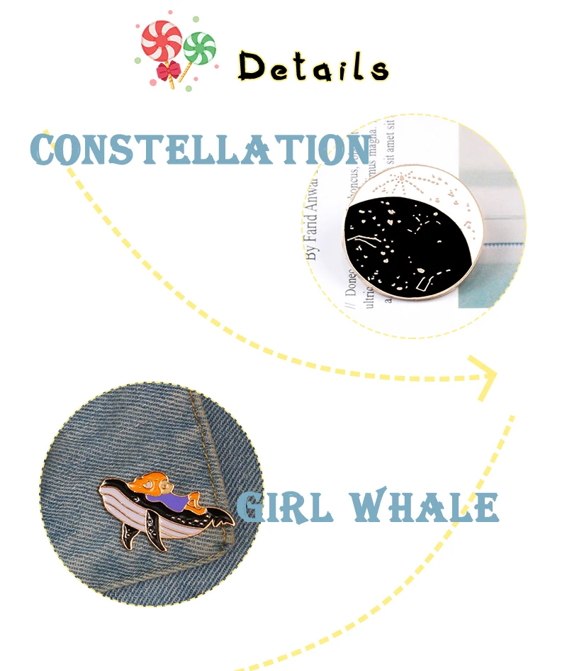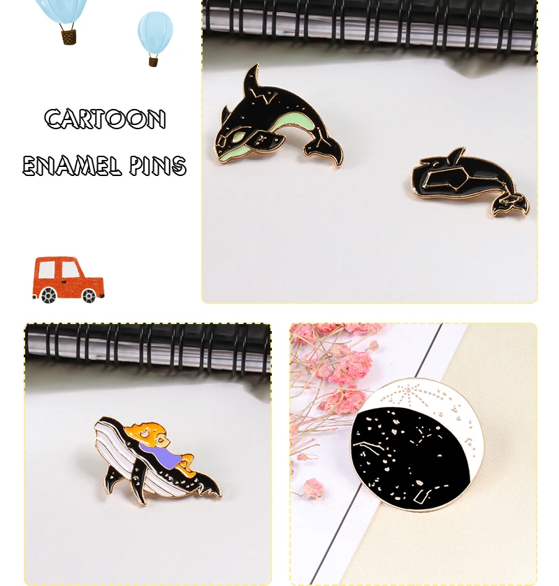 Романтические созвездия одинокая Элис Кита Акула Звездная шпилька Луна брошь эмалированная лацкан значок для рюкзака Броши милые ювелирные изделия