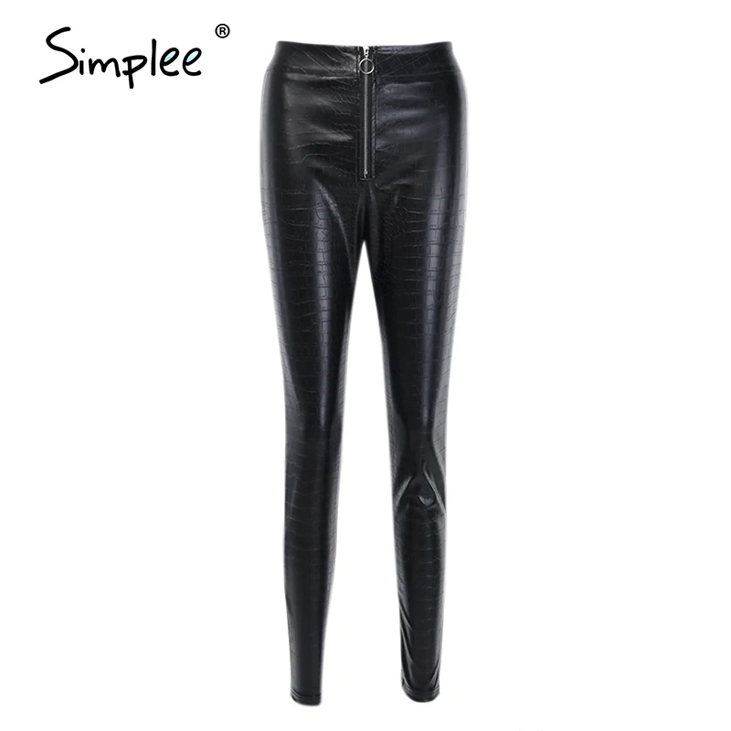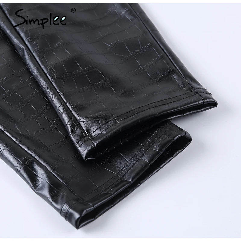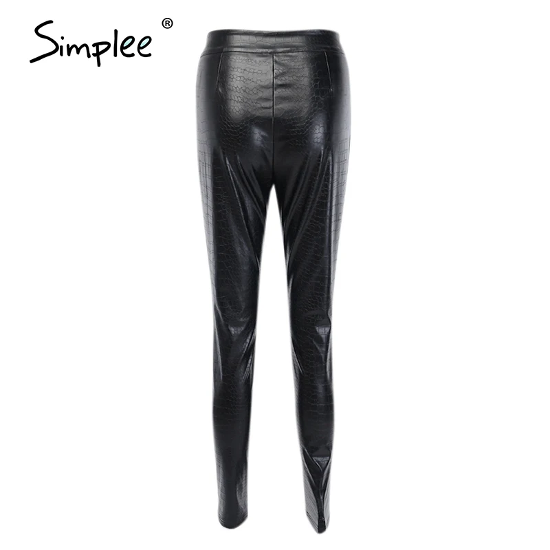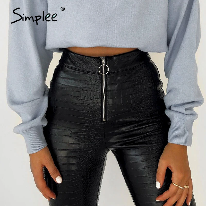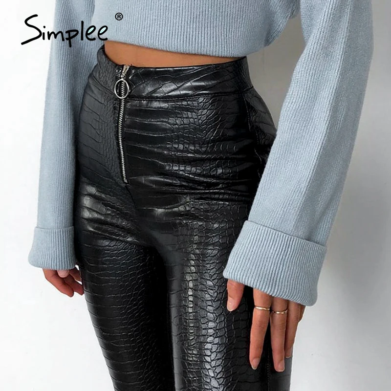 Simplee, Ретро стиль, змеиная кожа, искусственная кожа, обтягивающие штаны, для женщин, уличная одежда, высокая талия, молния, женские штаны, искусственная кожа, панк стиль, узкие, весенние брюки